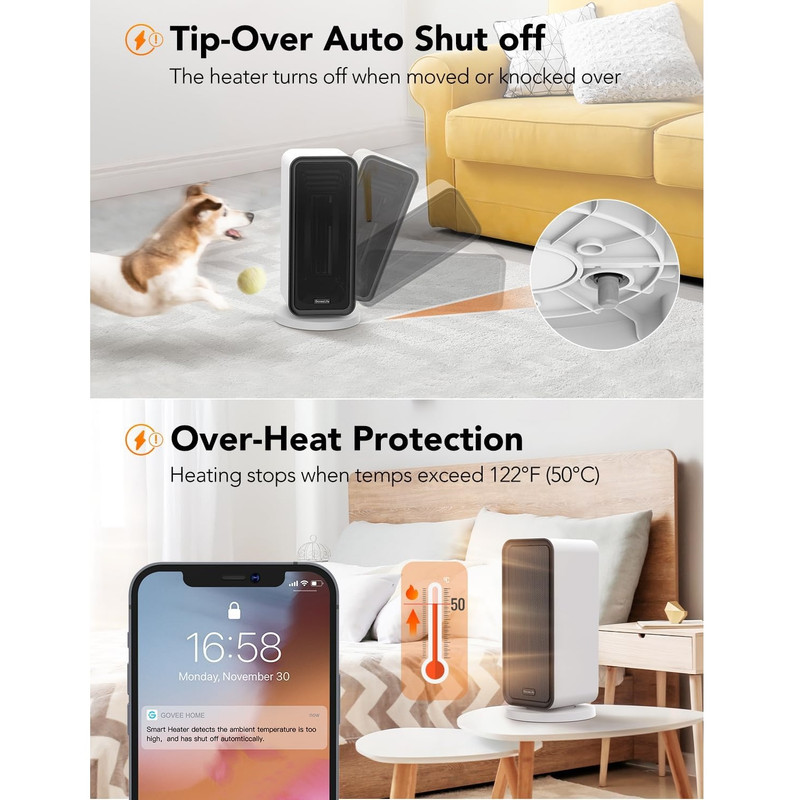 | سایر توضیحات | بخاری برقی Govee Life مدل H713A،بخاری برقی Govee Life، بخاری هوشمند کم مصرف با ترموستات، کنترل از طریق وای فای و بلوتوث، بخاری با الکسا و دستیار گوگل کار میکند، بخاری سرامیکی برای اتاق خواب، دفتر کار، خانه، سفید H713A نوع دستگاه: بخاری برقی هوشمند با المنت سرامیکی PTC ، توان گرمایشی: 1500 وات ،قابلیت اتصال هوشمند: کنترل کامل از طریق اپلیکیشن Govee Home (اندروید و iOS) پشتیبانی از اتصال وایفای و بلوتوث برای کنترل از راه دور ،سازگار با دستیارهای صوتی: Alexa و Google Assistant،قابلیت ترموستات دیجیتال: تنظیم دمای هدف و نگهداشتن دما بهصورت خودکار،چرخش اتوماتیک: دارای قابلیت نوسان ۸۰ درجه،دارای تایمر خواب: تنظیم زمان خاموش شدن از طریق اپلیکیشن،حالتهای گرمایش: سه حالت،سنسور محافظت در برابر داغ شدن ،سنسور خاموشی در صورت واژگونی،بخاری کممصرف: حالت ECO (حالت خودکار) که مصرف برق غیرضروری ناشی از گرمای بیش از حد را کاهش میدهد، با عملکرد صرفهجویی در مصرف انرژی، در هزینههای برق صرفهجویی میکند. بخاری میتواند دما را از طریق برنامه کنترل کند، برق غیرضروری را کاهش دهد و زندگی را سازگارتر با محیط زیست کند. کنترل از راه دور از طریق اپلیکیشن: حتی وقتی از خانه دور هستید، بخاری را روشن کنید تا همیشه به فضای گرم برگردید. استفاده دوگانه از بلوتوث و وایفای، توزیع شبکه را آسانتر و سریعتر میکند. سازگار با الکسا، دستیار گوگل و IFTTT. گرمایش سریع ۲ ثانیهای و ۴ حالت: این بخاری برقی میتواند به سرعت در عرض ۲ ثانیه گرم شود. بخاری دارای ۴ حالت گرمایشی است: ۱۵۰۰ وات گرمای زیاد، ۱۰۰۰ وات گرمای متوسط، ۷۰۰ وات گرمای کم و حالت خودکار. حالت خودکار صرفهجویی در انرژی به شما کمک میکند تا گرم بمانید و مصرف انرژی را کاهش دهید، هزینههای گرمایش را کاهش دهید، میتوانید حالتهای مختلف را متناسب با فصول مختلف و نیازهای دمایی تغییر دهید. حفاظت ایمنی: بخاریهای کممصرف ما با مواد ABS با کیفیت بالا و مقاوم در برابر شعله ساخته شدهاند و دارای عملکرد محافظت در برابر گرمای بیش از حد و واژگونی هستند. بخاری خانگی پس از افتادن یا گرم شدن بیش از حد به طور خودکار خاموش میشود تا استفاده ایمن هنگام خواب، کار یا تماشای تلویزیون تضمین شود.بخاری قابل حمل: این بخاری برقی شامل نوسان ۸۰ درجه، گرمای ملایم، تایمر، قفل ایمنی، حالت «مزاحم نشوید» و سیم برق ۶ فوتی است. |