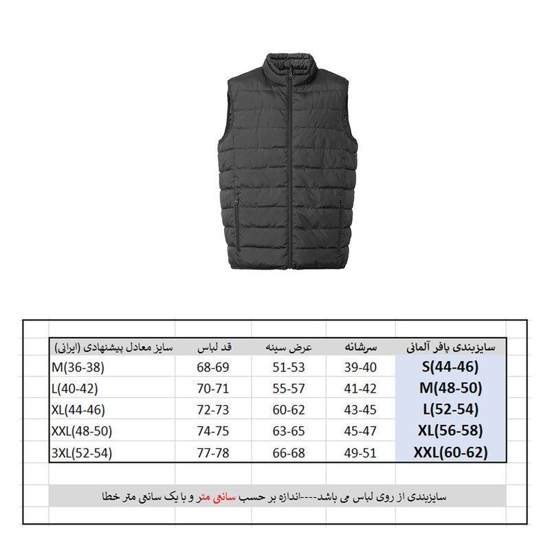 جزئیات | این محصول بر اساس سایزبندی آلمانی و قواره دار است لطفأ برای انتخاب سایز به جدول سایز ارائه شده مراجعه فرمایید. (حجم لباس حدودأ 0.5-1 سانتی متر از هر طرف لحاظ شود.) |