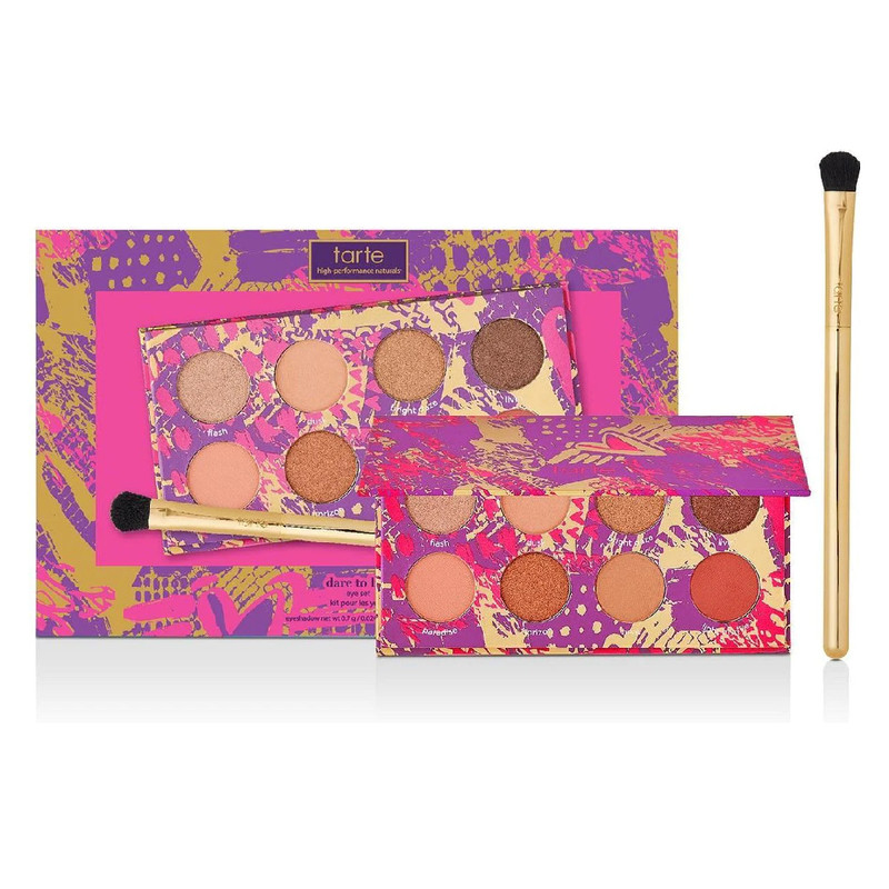 محصول Dare to Live از Tarte یک ست آرایشی است که شامل یک پالت سایه چشم و یک براش است. پالت سایه چشم دارای هشت سایه از رنگ های جذاب است که با خاک رس جنگل های آمازون ساخته شده اند و همین موضوع به رنگ ها ماندگاری بالایی بخشیده است. یک براش نرم و بسیار کاربردی از برند تارت در این مجموعه وجود دارد که به ترکیب سایه های چشم برای آرایش های متنوع شما کمک می کند. سایه های این پلت زیبا، با توناژ گرم و خنثی در 8 رنگ مختلف از کالکشن Dare to Live گرد آوری شده است. همگی این سایه ها با بافت نرم و کرمی خود به راحتی با کمترین مقدار ریزش ترکیب میشوند. برند تارت cruelty free بوده و همه محصولات آن وگان و بدون ظلم به حیوانات تهیه و تولید میشوند.