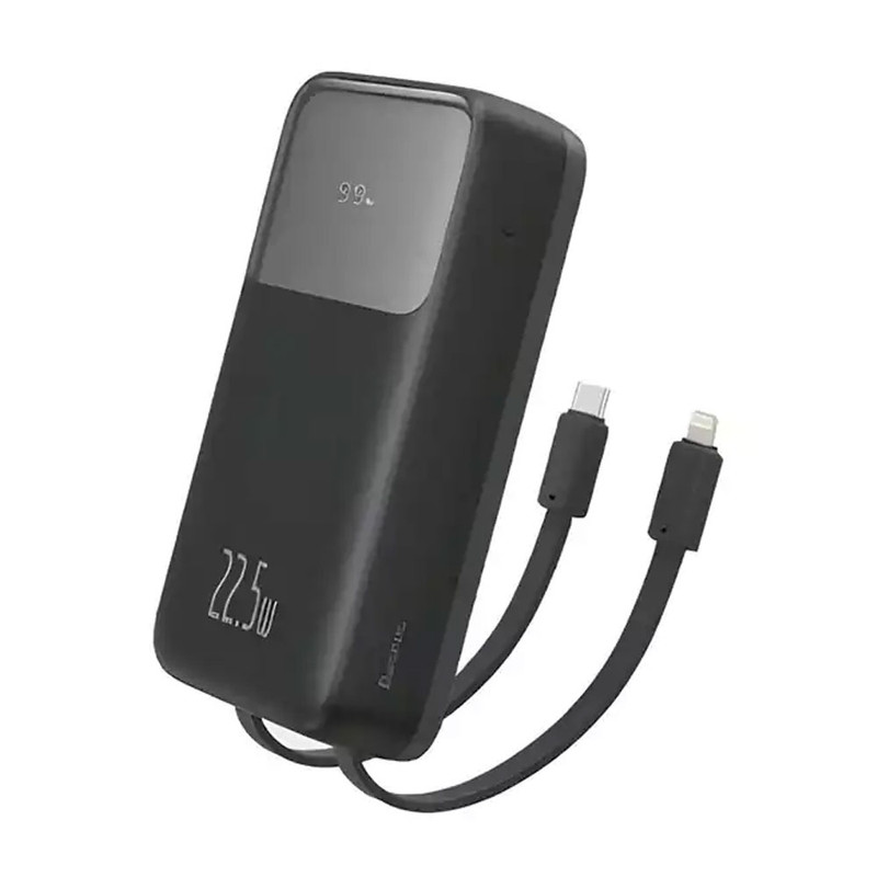 پاوربانک باسئوس مدل Baseus Comet Series PPMD20 مجهز به کابل USB-C (22.5 واتی) و فناوری شارژ فوق سریع انحصاری Baseus است. علاوه بر کابل USB-C، یک کابل لایتنینگ نیز وجود دارد که با تمام دستگاههای دارای این پورت سازگار است. پاوربانک بیسوس به شما امکان میدهد چهار دستگاه را به طور همزمان از طریق کابلهای همراه و پورتها شارژ کنید. پاوربانک باسئوس Comet را از طریق درگاه USB-C میتوانید در حدود 2 ساعت به طور کامل شارژ کنید. به علاوه، یک صفحه نمایش LED داخلی درصد باقیمانده باتری را نشان میدهد و ویژگیهای ایمنی پاوربانک باسئوس از شما در برابر مسائلی مانند جریان بیش از حد و ولتاژ اضافی محافظت میکند.
