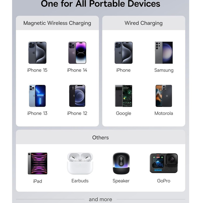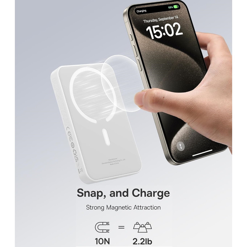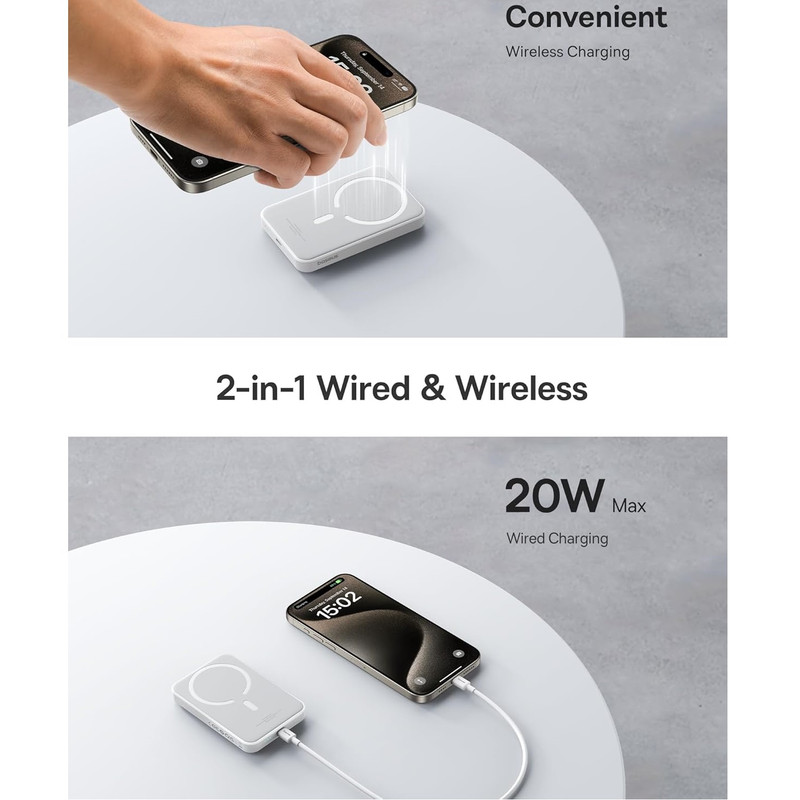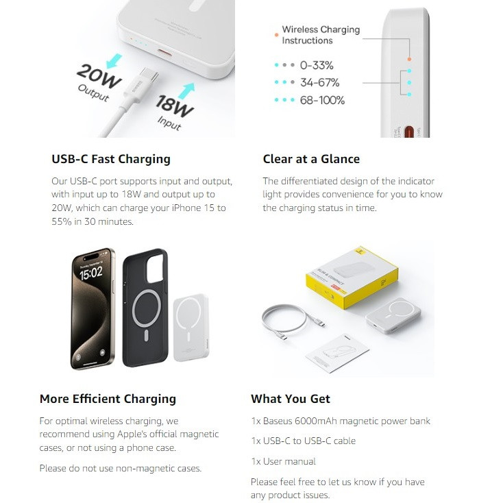 | مشخصات فنی | سبک وزن، شارژ سریع، اندازه جیبی، شارژ بی سیم، نسخه ارتقا یافته 2024، تجربه شارژ را بهینه می کند و تولید گرما را در طول شارژ بی سیم کاهش می دهد. |