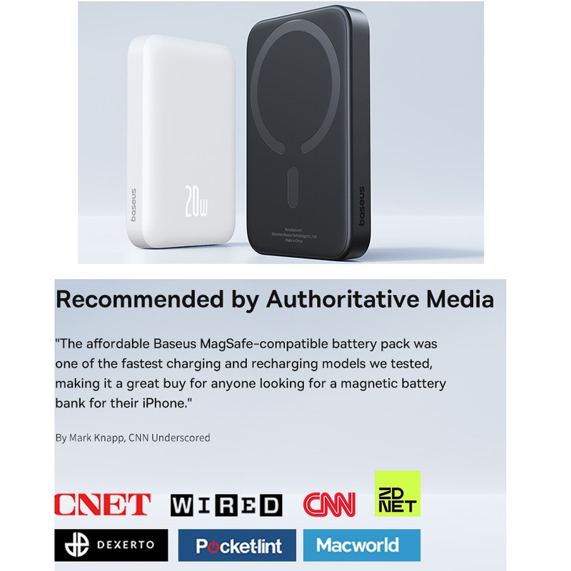 𝐑𝐞𝐜𝐨𝐦𝐦𝐞𝐧𝐝𝐞𝐝 𝐛𝐲 𝐂𝐍 𝐔𝐧𝐝𝐞𝐫𝐬𝐜𝐨𝐫𝐞𝐝 : "بسته باتری مقرون به صرفه Baseus MagSafe یکی از سریعترین مدلهای شارژ و شارژ مجدد بود که ما آزمایش کردیم، و آن را برای هر کسی که به دنبال باتری مغناطیسی آیفون خود میگردید، خریدی عالی کرد." یک سردبیر در CNN Underscored گفت.