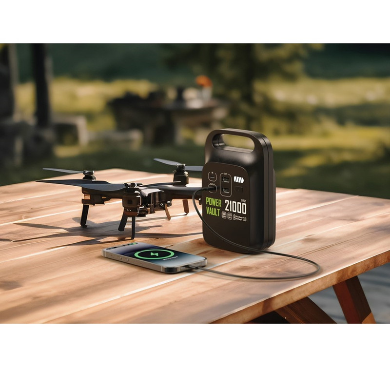 مشخصات فنی نیروگاه 21000 میلی آمپر ساعتی ساخته شده با ABS بازیافتی دارای تاییدیه RCS. کل محتوای بازیافتی: 25٪ بر اساس وزن کل اقلام. گواهی RCS تضمین کننده یک زنجیره تامین کاملاً تایید شده از مواد بازیافتی است. طاق برقی برای بیرون از منزل، مسافرت یا در مواقع اضطراری در خانه مناسب است. باتری 21000 میلی آمپر ساعتی می تواند چندین مورد را به طور همزمان از طریق 3 پورت خروجی شارژ کند (2x USB A، 1X نوع C) با چراغ LED یکپارچه 120 لومن که می تواند تا 40 ساعت در مواقع اضطراری کار کند و همچنین دارای حالت SOS است. با میل لنگ اضطراری در صورت خالی شدن کامل باتری و نیاز به برق بیشتر. ورودی Type-C: 5V/2.4A; 9 ولت / 2 آمپر؛ 12 ولت / 1.5 آمپر. خروجی Type-C: 5V/2.4A; 9V/2A; 12 ولت / 1.5 آمپر خروجی USB-A: 5V/2.4A; 9V/2A; 12 ولت / 1.5 آمپر. IPX 5 ضد آب ایده آل برای شارژ شدن توسط پنل های خورشیدی سیار (شامل نمی شود)