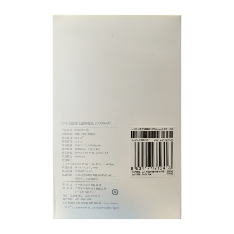 مشخصات فنی | حداکثر توان خروجی: تا 10 وات | حداکثر آمپر خروجی: 3آمپر - 5 ولت | دارای 1 پورت خروجی USB | رابط ورودی: Type-C | قابلیت شارژ وایرلس |