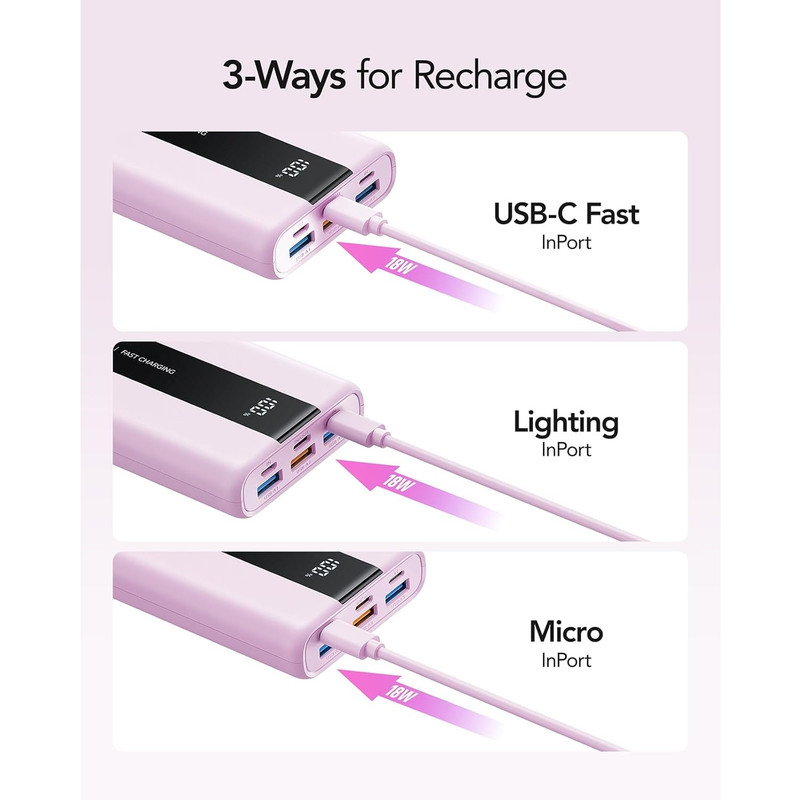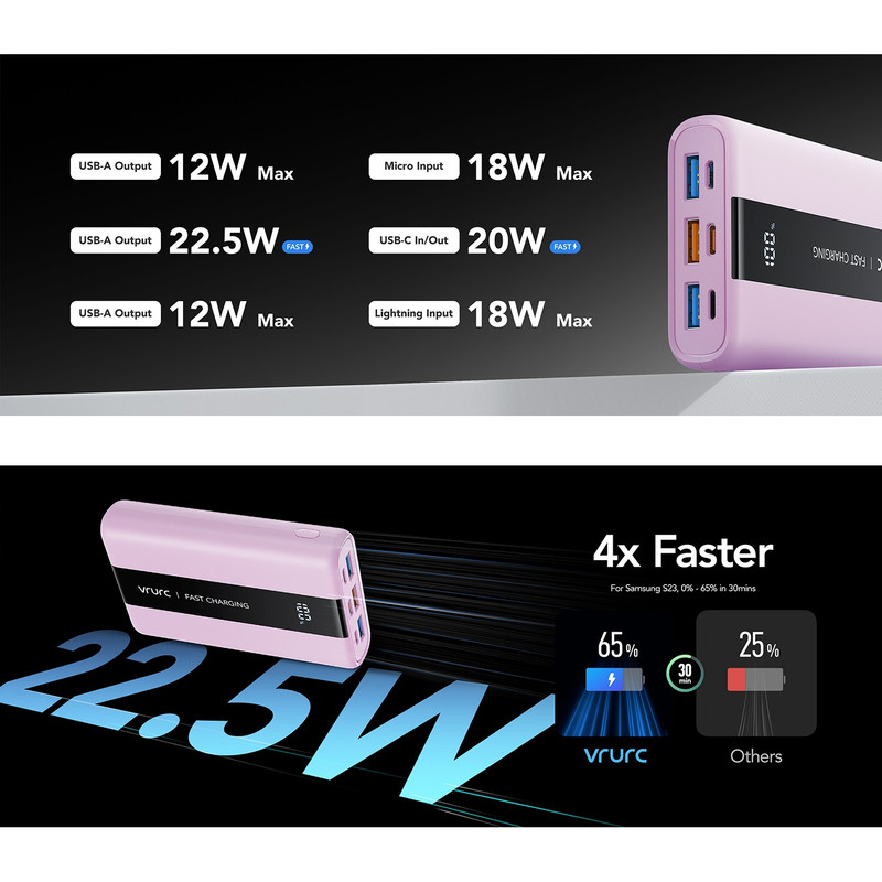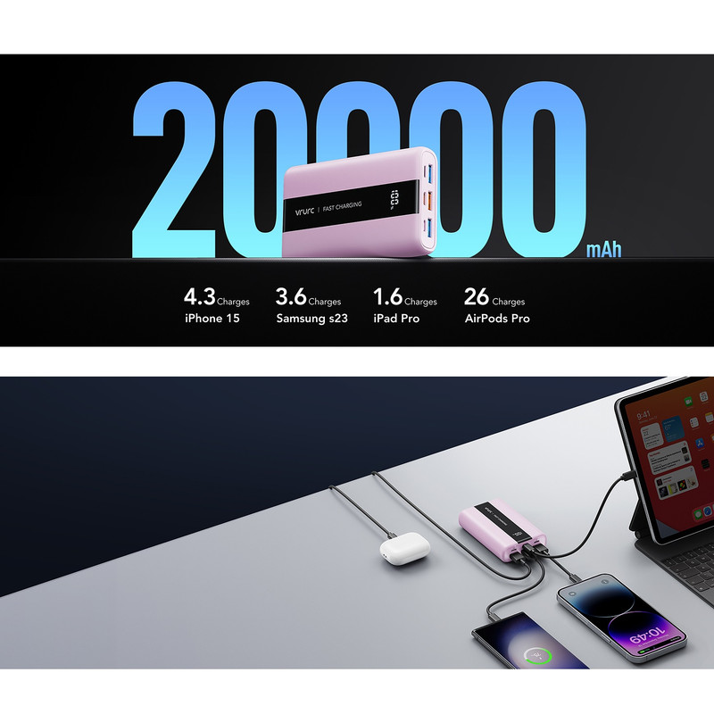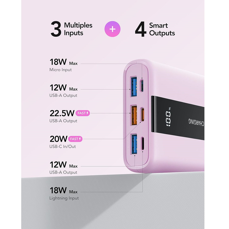 | مشخصات فنی | شارژ سریع ۲۲.۵ وات، شارژ سریع ۲۲.۵ وات، ۳ پورت USB و ۳ ورودی، صفحه نمایش دیجیتال، اندازه جیبی، باریک، کوچکترین پاوربانک ۲۰۰۰۰ میلیآمپر ساعتی شارژر قابل حمل با قابلیت شارژ سریع: پورت USB 22.5W، پورت Type-C 20W، پشتیبانی از پروتکل شارژ سریع PD QC 3.0. میتوانید گوشیهای جدید خود را در عرض 30 دقیقه تا 60٪ شارژ کنید. ورودی و خروجی USB C:پورت ورودی و خروجی USB C ارتقا یافته از خروجی 20 وات برای شارژ سریع دستگاههای آیفون، سامسونگ و غیره پشتیبانی میکند. ورودی 18 وات برای شارژ سریعتر خود پاوربانک. برخلاف سایر شارژرهای قابل حمل موجود در بازار که فقط از خروجی USB C پشتیبانی میکنند. شارژ ۴ دستگاه:شارژر قابل حمل تلفن همراه با ۳ پورت USB + ۱ پورت Type-C برای خروجی. میتوانید ۴ دستگاه را همزمان شارژ کنید. سازگار با بیش از ۱۰۰۰ دستگاه مانند آیفون ۱۶، ۱۵، ۱۳، ۱۲ و ۱۱، سری سامسونگ، اندروید و سایر تجهیزات شارژ سریع. 3 روش ورودی: گزینههای شارژ مجدد Muitl، پورت USB-C/Micro/برای آیفون، روشهای شارژ را ساده میکند. شارژ کامل این پاوربانک جمع و جور 6 ساعت طول میکشد. (توسط کابل و آداپتور 9v 2a) شارژ ایمن:حالتهای محافظت خودکار برای گرمای بیش از حد، ولتاژ بیش از حد، شارژ بیش از حد و اتصال کوتاه. دستگاه خود را با خیال راحت و بدون آسیب رساندن به باتری شارژ کنید. نوع کانکتور ورودی مکیرو، پورت ورودی لایتنینگ، ورودی و خروجی USB نوع C / 3 پورت USB |