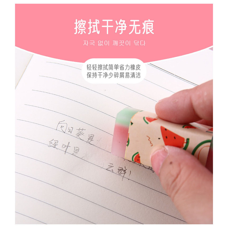 این پاککن بهخوبی اشتباهات نوشتاری شما را از بین برده و اطراف محل کار شما را کثیف نمیکند. پاک کن میوه ای سه عددی به شکل یک مستطیل است. این پاککن بهراحتی در بین انگشتان شما قرار گرفته و به همین دلیل در استفادهی طولانیمدت آسیبی به دست شما نمیزند. با این محصول هیچ اثری از اشتباه نوشتاری شما به جا نخواهد ماند تا شما بتوانید درست از همان جایی که اشتباه کردید، نوشتن را دوباره آغاز کنید. میزان پرزی که در اثر کار با این پاک کن تولید میشود بسیار کم است. این امر از کثیف شدن دفتر و کتاب یا محیطی که در آن مشغول نوشتن هستید جلوگیری میکند. لذت نوشتن با مداد یا مداد نوکی زمانی دو برابر میشود که یک پاککن خوب هم برای پاک کردن اشتباهاتتان در اختیار داشته باشید.