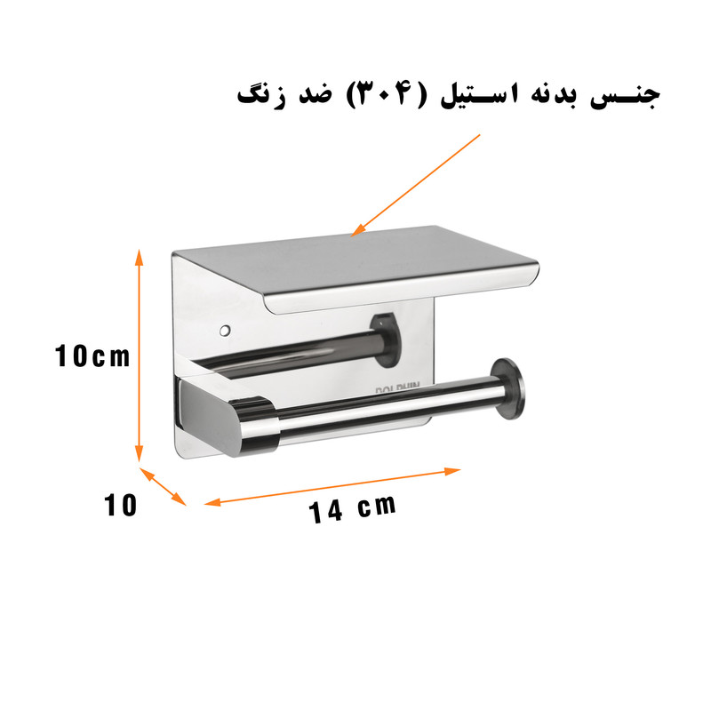 جای دستمال استیل دلفین . این محصول ساخته شده از استیل 304 است که ضد زنگ و ضد آب میباشد. استیل بدنه بسیار ضخیم و مقاوم است .نصب کالا توسط پیچ و رولپلاک انجام میشود که همراه محصول است.