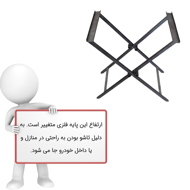 پایه فلزی تاشو یک وسیله کاربردی است که شما می توانید کباب پز خود را روی قسمت هایی که برای پایه کباب پز طراحی شده بگذارید. این پایه فلزی تاشو به راحتی قابل حمل بوده و جای زیادی در خودرو یا مکان مورد نظرتان نمی گیرد. ابعاد تا شدن این محصول به ترتیب طول 37، عرض 2 و ارتفاع 90 سانتی متر است. با توجه به اینکه این پایه فلزی بوده ابعاد مورد نظر نیز نسبت به کباب پز تغییر خواهد یافت.