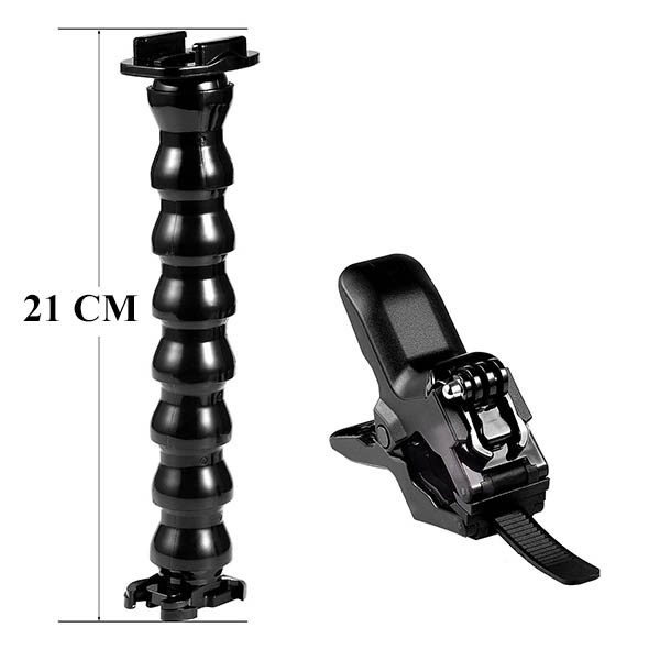 ازآنجاییکه دوربینهای ورزشی یا اکشن، جزو تجهیزات حرفهای محسوب میشوند، لوازم جانبی آنها نیز بهطور حرفهای و تخصصی طراحی و ساخته میشوند تا هماهنگی و انطباق کاملی با آنها داشته باشند. پایه نگهدارنده انعطاف پذیر مدل Gooseneck Clamp یا گیره و بازویی گردن غازی مخصوص دوربینهای ورزشی گوپرو یکی از همین تجهیزات حرفهای است که با انواع دوربین گوپرو و دیگر دوربین های اکشن سازگار است. در حقیقت این محصول متشکل از یک بازوی انعطاف پذیر است که توسط اتصالات کشویی به دوربین ورزشی شما متصل می شود تا در مواقع لازم دوربین را به هر نوع مانت یا نگهدارنده کشویی گوپرو یا گیره نگهدارنده همراه محصول وصل کنید. قسمت انتهای این مانت دارای اتصال کشویی مخصوص و محکم است که برای اتصال به مانت های دوربین های گوپرو طراحی شده اند تا حداکثر استحکام و اطمینان را برای محافظت از دوربین شما فراهم سازد. گیره همراه این محصول با طراحی ویژه خود امکان اتصال محکم و با اطمینان را به انواع اجسام میله ای شکل یا مسطح را می دهد. علاقهمندان به تصویربرداری از حرکات سریع و پرانرژی ورزشی خودشان، میتوانند با خیالی آسوده از این گیره برای وصل کردن دوربین به پایه های مختلف استفاده کنند. این محصول قابلیت انعطاف و تغییر زاویه در همه جهات را دارد تا زوایای جذاب و هیجان انگیز فیلمبرداری و عکاسی را از دست ندهید.