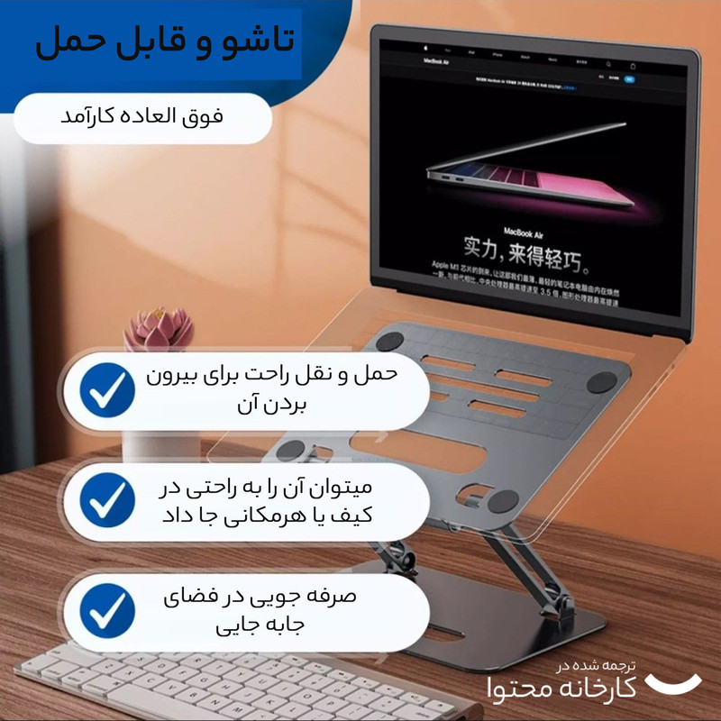 همچنین استفاده از پایه نگهدارنده لپ تاپ سبب گردش هوای بهتر اطراف لپ تاپ شده و مانع آسیب رسیدن به آن می شود.