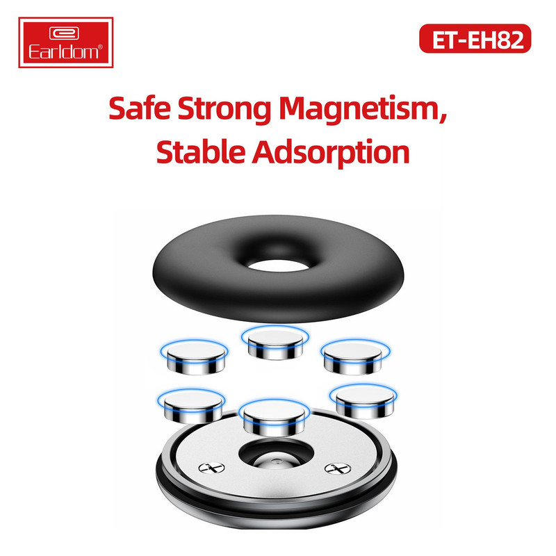 هولدر ها ابزاری هستند که خطر استفاده از گوشی های هوشمند را در هنگام رانندگی تا حد چشم گیری کاهش می دهند.هولدر مغناطیسی ET-EH82 محصولی از کمپانی Earldom بوده که به صورت مغناطیسی گوشی شما را نگه می دارند.این محصول به وسیله چسبی که در انتهای آن قرار دارد به سطوح صاف مانند شیشه ، میز و داشبورد می چسبد. سری این هولدر از 4 مگنت تشکیل شده است وبه وسیله پد های فلزی قرار گرفته داخل پک این محصول گوشی را نگه می دارد.جنس بدنه هولدر Earldom ET-EH82 فلزی می باشد و در برابر ضربه و خط و خش بسیار مقاوم می باشد.سری این هولدر قابلیت چرخش 360 درجه دارد که این امکان را به کاربر می دهد تا به راحتی بتواند زاویه دید خود را با گوشی تنظیم کند و از گوشی خود در راحت ترین حالت ممکن استفاده کند.