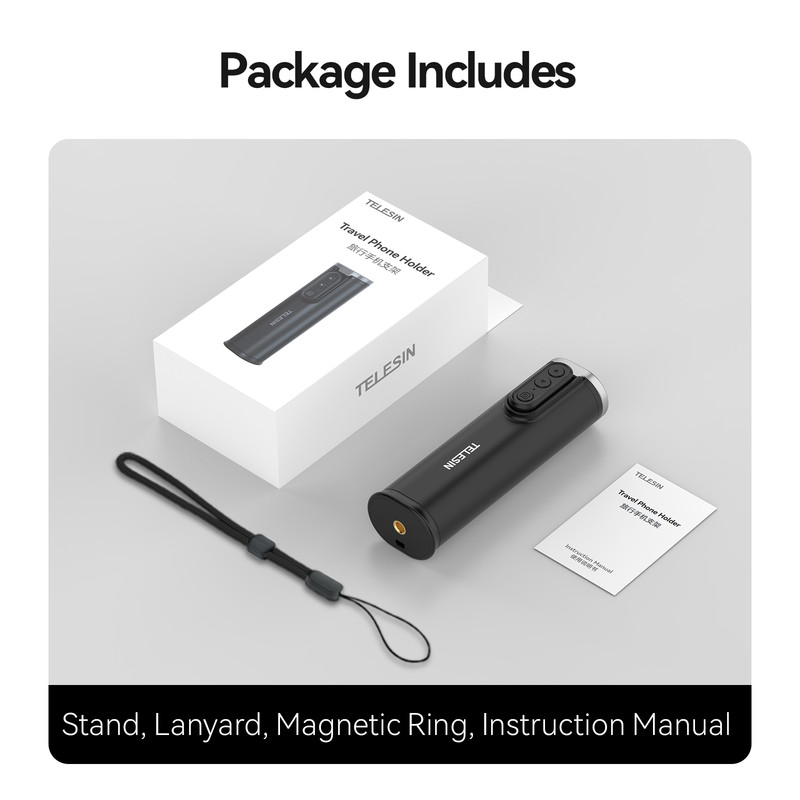 پایه نگهدارنده تلفن مغناطیسی کنترلی TELESIN مدل P1-HSS-02 یک هولدر حرفهای با طراحی هوشمند است که مخصوص فیلمبرداری، لایو استریم، ولاگ و عکاسی با گوشی طراحی شده است. این پایه با بهرهگیری از سیستم مغناطیسی قدرتمند و ریموت کنترل بلوتوثی، به شما امکان میدهد بدون نیاز به لمس گوشی، زاویه دید و موقعیت دستگاه خود را بهراحتی تنظیم کنید.