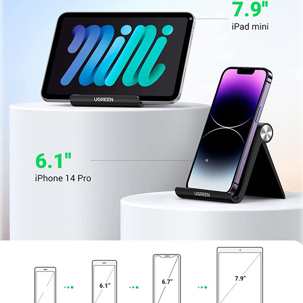 پایه کاربردی UGREEN LP106 برای گوشی‌های هوشمند و تبلت تا 7.9 اینچ طراحی شده است، می‌تواند زندگی شما را از بسیاری جهات آسان‌تر کند. به لطف زاویه شیب قابل تنظیم، موقعیت آن را با نیازهای خود تنظیم خواهید کرد. این محصول از مواد مرغوب ساخته شده است. با استفاده از آن، می توانید به راحتی بازی های موبایل مورد علاقه خود را نیز انجام دهید. این پایه که از پلاستیک ABS سازگار با محیط زیست ساخته شده است، هم محفظه و هم قسمت های داخلی آن در برابر سایش مقاوم بوده و برای مدت طولانی در خدمت شما خواهد بود. به لطف طراحی کوچک و تاشو و وزن سبک آن، می توانید پایه را هر کجا که می خواهید با خود ببرید. به راحتی می توانید آن را در کیف یا کوله پشتی خود قرار دهید.