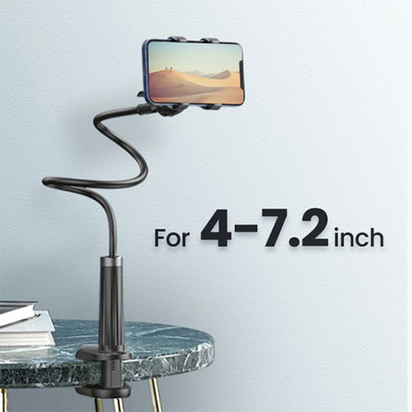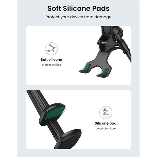 پایه نگهدارنده گوشی مناسب تخت و میز یوگرین مدل LP113-80906، هولدری زیبا با بدنه ای بسیار محکم و مقاوم و بسیار کاربردی است. این پایه دارای یک بازویی شلنگی بسیار محکم به طول 90 سانتی متر است و جنس داخلی پایه شلنگی آن از آلومینیوم میباشد و تحمل وزن تا 300 گرم را دارد که گوشی موبایل از 4 اینچ تا 7.2 اینچ را به راحتی نگه میدارد. سری نگهدارنده این محصول کلیپسی است که استفاده از آن را راحتتر میکند و همچنین داخل لبههای گیره آن حاوی محافظ برای جلوگیری از هرگونه آسیب به گوشی همراه است و هنگام قراردادن گوشی روی پایه به خوبی فیکس شده و کاملا ایمن گوشی را نگه میدارد. در قسمت پایین آن گیرهی مخصوص برای اتصال به لبه میز، تخت و ... تعبیه شده که قابل تنظیم میباشد. دارای قابلیت چرخش 360° است که به کاربر امکان تنظیم زاویه دید دلخواه را میدهد. پایه نگهدارنده گوشی مناسب تخت و میز یوگرین مدل LP113-80906، بهترین انتخاب برای فیلم دیدن در تخت و یا فیلم و عکس گرفتن از نحوه کشیدن نقاشی یا ... است.