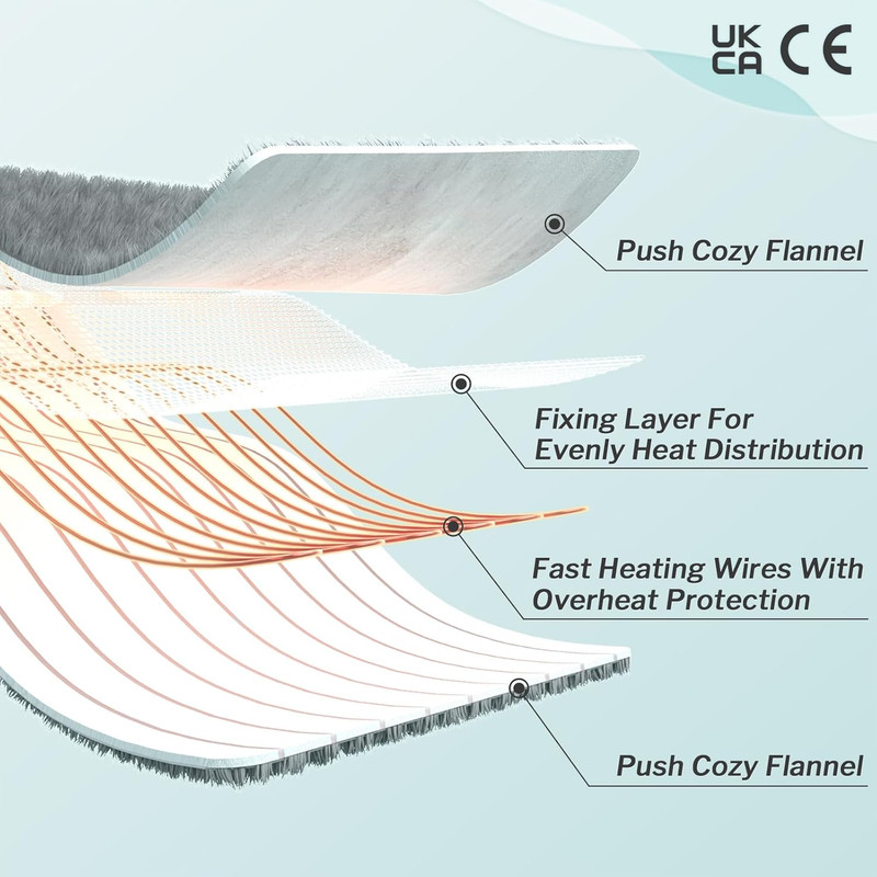 ویژگی های ایمنی - پرتاب پتو با گرمکن Coriwell دارای محافظ ایمنی در برابر گرمای بیش از حد است که به شما امکان می دهد از پتو پرتاب برقی خود در طول شب با خیال راحت استفاده کنید. و پرتاب پتوی برقی ما کاملاً مطابق با CE با مقررات بریتانیا و اروپا است. پتو گرمایی شما را گرم و در عین حال ایمن نگه می دارد.: قبل از برداشتن کنترلر باید منبع تغذیه را قطع کنید)، خشک نکنید، گرما را حفظ کنید. پتو را تمیز کنید تا بتوانید راحت تر از آن استفاده کنید.