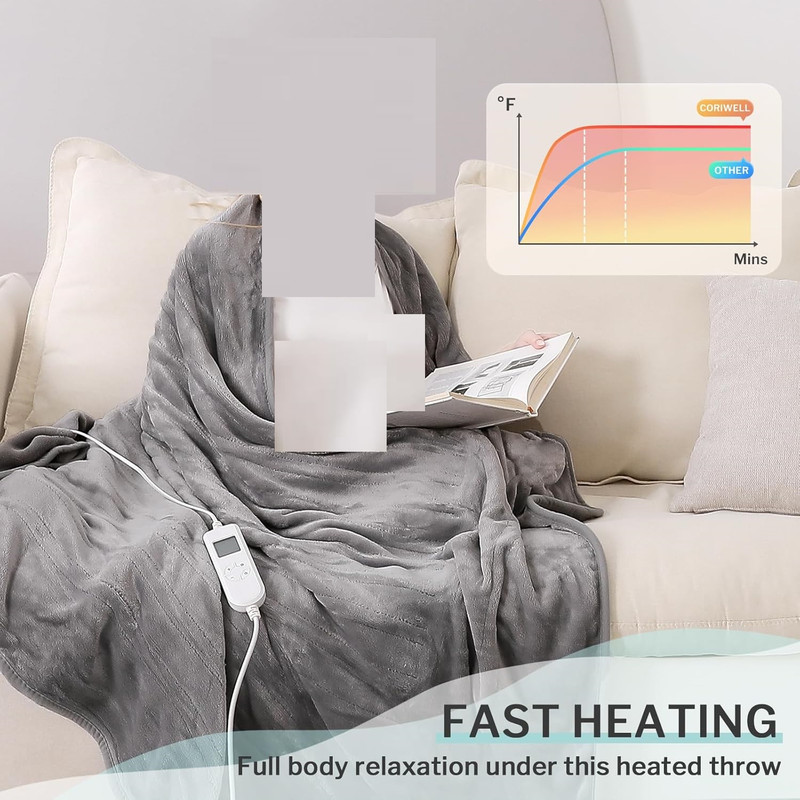 نرم و راحت - پتوی پرتابی گرم شده کوریول از فلانل ساخته شده است که نرم و سازگار با پوست است. این پتوی برقی بسیار بزرگ با ابعاد 160 در 120 سانتی متر، شما را برای خواب عمیق روی مبل، میز صندلی یا تخت و در شب های سرد زمستانی گرم نگه می دارد.