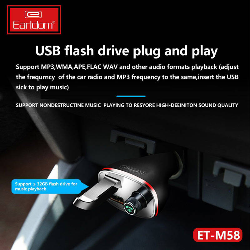 روی شارژر فندکی ارلدام ET-M58 دو عدد پورت USB وجود دارد که می توانید همزمان دو گوشی را شارژ کنید و یا با اتصال فلش مموری، آهنگهای موجود روی آن را پخش نمایید.