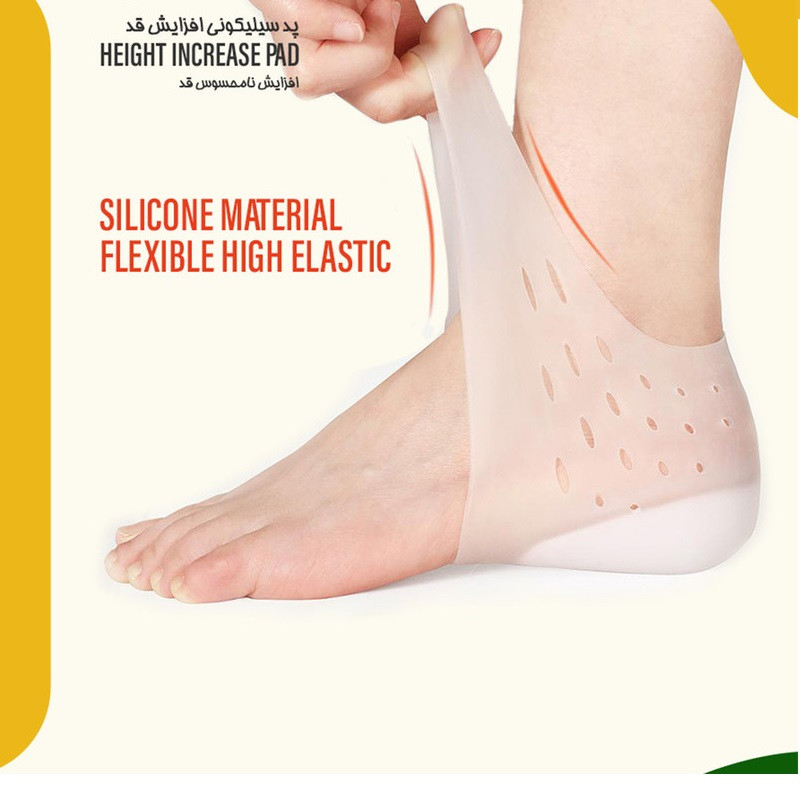 این محصول یک جفت کفی پوشیدنی ساخته شده از ژل سیلیکونی بسیار با کیفیت و نرم میباشد که افزایش قد 3.5 سانتیمتری را برای شما به ارمغان میاورد. کفی این محصول با توجه به پهن تر بودن نسبت به محصولات مشابه , قابلیت حفظ تعادل بهتری برایتان خواهد داشت. سوراخ های ریز روی محصول باعث ضد تعرق بودن آن است. مهمترین ویژگی آن این است که بر خلاف تمامی مدل های قبلی افزایش قد که فقط داخل کفش قابل استفاده بودند، میتوانید آنرا مانند جوراب داخل منزل بپوشید و به راحتی با آن راه بروید.همچنین این پد این قابلیت را دارد که در داخل کفش یا صندل هم استفاده شود.