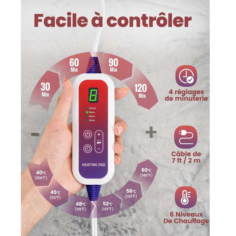ایمنی قابل اعتماد: پد گرمایشی ما که با در نظر گرفتن ایمنی شما طراحی شده است، از سیم‌های گرمایشی آلیاژی دو مارپیچ پیشرفته برای گرمای یکنواخت و مداوم بدون نقاط داغ استفاده می‌کند و سیستم محافظت 5 لایه و مدار عایق داخلی از گرمای بیش از حد جلوگیری کرده و دستگاه را پس از 30، 60، 90 یا 120 دقیقه به طور خودکار خاموش می‌کند. با خیال راحت بدانید که گرمادرمانی شما چه در خانه و چه در محل کار، ایمن، قابل اعتماد و با مصرف انرژی بهینه است.