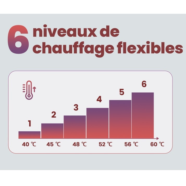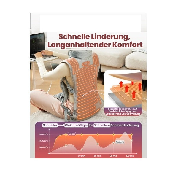 راحتی تمام بدن برای تسکین روزانه: پد گرمایشی قابل حمل ما با ابعاد ۱۳۸x۴۲ سانتی‌متر، تسکینی آرامش‌بخش برای تمام قسمت‌های بالای بدن شما مانند شانه‌ها، پشت، کمر و سایر نواحی فراهم می‌کند. با ۶ حالت تنظیم گرما (۴۰ تا ۶۰ درجه سانتیگراد)، می‌توانید به راحتی سطح راحتی ایده‌آل خود را پیدا کنید. چه برای تسکین درد پس از تمرین و چه برای استرس روزانه، این پد گرمایشی به شل شدن عضلات و ایجاد آرامش و آسودگی پس از یک روز طولانی کمک می‌کند.