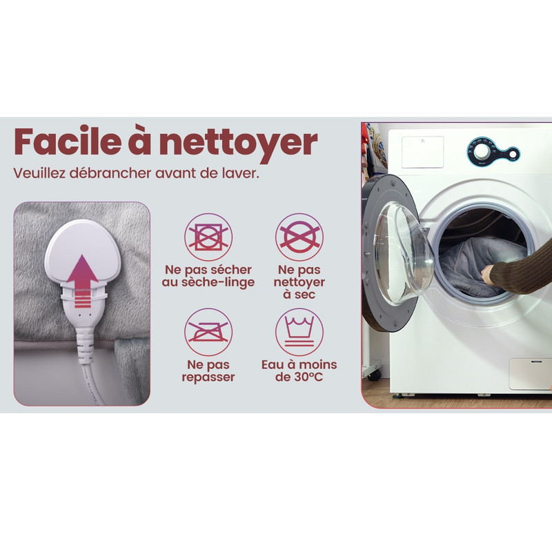 قابل شستشو با ماشین لباسشویی برای مراقبت بدون نگرانی: تمیز نگه داشتن پد گرمایشی آسان است. کافیست کنترلر را جدا کرده و آن را در ماشین لباسشویی بیندازید و به لطف ساختار بادوام آن، پارچه حتی پس از چندین بار شستشو نرم و مؤثر باقی می‌ماند و استفاده طولانی مدت را تضمین می‌کند.