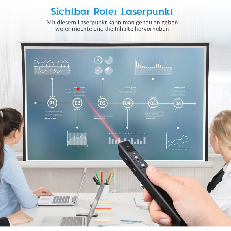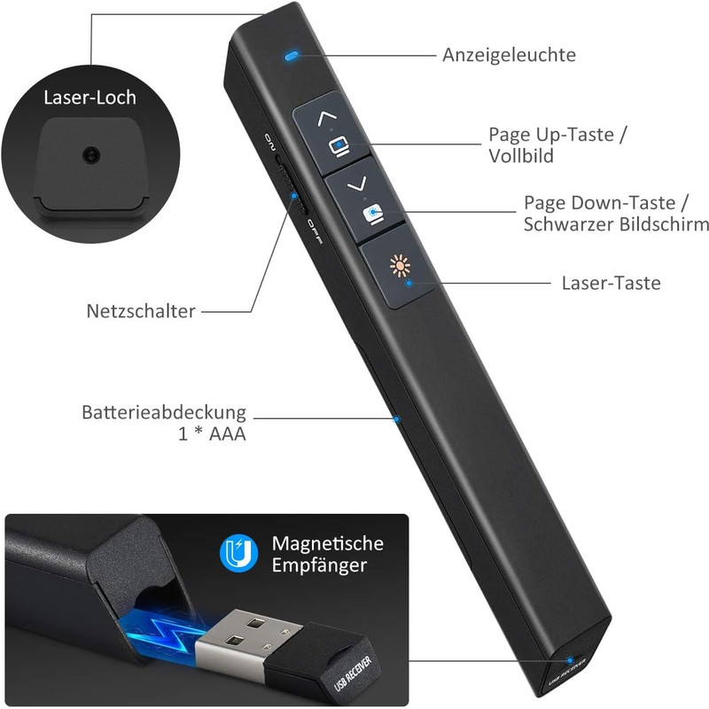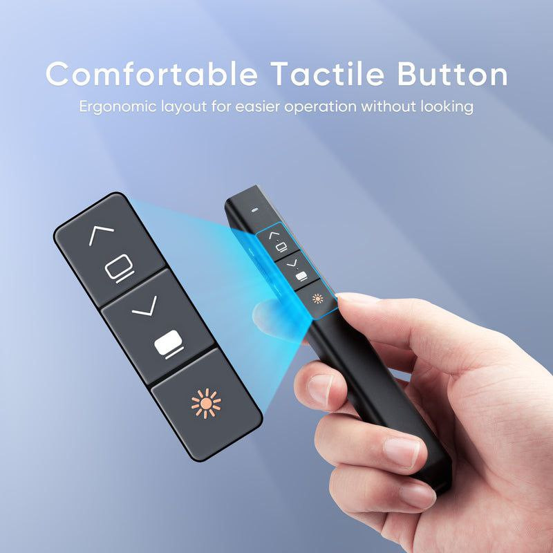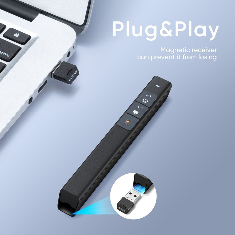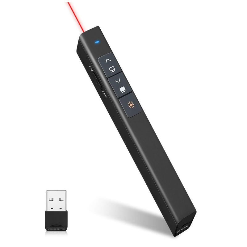 ویژگی ها محدوده کنترل نمایشگر رادیویی 10 متر / 33 فوت و 360 درجه قابل حمل دارای یک گیرنده USB داخلی صرفه جویی هوشمند در انرژی پشتیبانی از Windows XP/7/8/، سیستم عامل مک، لینوکس و اندروید ارائه ساده 4 دکمه ای: برای به حداقل رساندن پیچیدگی طراحی و عملکرد بهتر همه بلندگوها، Slide Click تنها به چهار کلید عملکرد فشرده مجهز شده است. بالا و پایین، تمام صفحه یا سیاه، روشن یا خاموش کردن، لیزر روشن یا خاموش هر 4 دکمه. اتصال بی سیم 2.4 گیگاهرتز: وصل و پخش کنید. با برد بی سیم 10 متر / 33 فوت و لیزر 100 متر / 328 فوت، می توانید آزادانه حرکت کنید و با مخاطبان هم در کلاس کوچک و هم در سالن تعامل داشته باشید. صرفه جویی هوشمند در انرژی: هنگامی که هیچ اقدامی انجام نمی شود، ارائه دهنده به طور خودکار به حالت آماده به کار و حالت خواب تغییر می کند. هنگامی که باتری خالی می شود، نشانگر سه بار به رنگ قرمز چشمک می زند تا به شما یادآوری کند که باتری را به موقع تعویض کنید. توجه: باتری گنجانده نشده است. استفاده آسان: دکمه از سیلیکون ساخته شده است و به نکات برجسته مجهز شده است تا بتوانید به سرعت دکمه مناسب را پیدا کنید. بنابراین می توانید روی ارائه خود تمرکز کنید، صفحه را کنترل کنید و حتی به اشاره گر نگاه نکنید. بدنه جلا داده شده است تا حسی عالی ایجاد کند. به طور گسترده استفاده می شود: دپ ها از Windows XP/7/8/، سیستم عامل مک، لینوکس و اندروید پشتیبانی می کنند. نشانگر لیزری با Microsoft، PowerPoint، Keynote، Prezi و غیره سازگار است. این نشانگر مخصوصاً برای معلمان، معلمان، مراجع و مراجع مناسب است.
