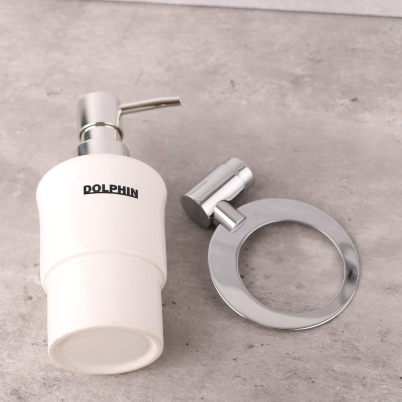 جای مایع دلفین، با طراحی مدرن و عملکرد بینظیر، گزینهای مناسب برای تکمیل دکوراسیون سرویس بهداشتی و آشپزخانه است. این محصول با بدنهای از جنس سرامیک باکیفیت و پایهای از جنس برنج با روکش کروم براق، علاوه بر زیبایی، دوام و مقاومت بالایی در برابر رطوبت و زنگزدگی دارد.