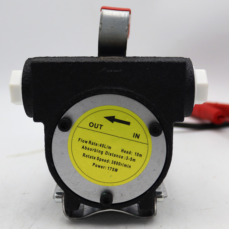 پمپ گازوئیل کش با برق 12 ولت (برق باطری خودرو ها ) کار می کند. این پمپ میتواند از داخل مخزن یا باک ماشین آلات (بنزین ، گازوییل، روغن، کروزنو، پارافین، روغن هیدرولیک و سایر روغن ها سوخت کشی انجام دهد. این پمپ ها می توانند از ارتفاع 5 متری مکش کرده و با قدرت بسیار بالا تا 10 متر ارتفاع سوخت رسانی انجام دهد.از ویژگی های مهم این پمپ ها سرعت سوخت کشی است. در واقع به علت نیروی خوب موتور این پمپ ها، به راحتی می توان انتقال را انجام داد. در واقع به علت نیروی بالای موتور پمپ گازوئیل کش برقی ماشین آلات راهسازی، به راحتی می توان انتقال را انجام داد.پمپ تخلیه گازوئیل دارای انبرهای سوسماری شکل برای اتصال به برق باطری می باشد و همچنین دارای کلید روشن و خاموش بر روی بدنه دستگاه است.