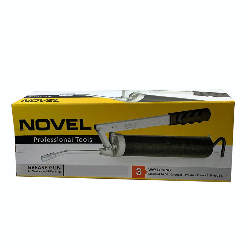 پمپ گریس "نوول" (Novel) مدلsmt-400پمپ گریس "نوول" (Novel) مدلsmt-400، بدنه و لولهای تمام فلزی دارد. طول لولهی خمیدهی انتقالدهندهی گریس در این گریس پمپ، 170 میلیمتر بوده و قطر مخزن آن 58 میلیمتر است و 400 میلیلیتر ظرفیت دارد. این وسیله وزنی برابر 1250 گرم دارد. از مزیتهای این پمپ میتوانیم به بدنهی ضد لغزش، سیستم خلاصکنندهی سریع و استفادهی آن با کارتریج گریس یا گریس دستی اشاره کنیم. گریس مادهای روان کننده است. این ماده غلظت بالایی دارد و دارای خواص به خصوصی است که روغن روان کننده به تنهایی آن خواص را ندارد. از خواص گریس میتوان به کاهش دادن نیروی اصطکاک و جلوگیری از سائیدگی اجزای یاتاقانها، مقاومت در برابر نشتی و چکهکردن از سطوح روان کاری شده و محافظت قطعات در برابر خوردگی اشاره کرد. شما میتوانید مخزن این پمپ را از گریس پر کنید. سپس سری نازل آن در محل مورد نظر قرار داده و با فشار مناسب دستهی آن به گریسکاری بپردازید. سری گریس پمپ نوول قابل تعویض میباشد . شرکت نوول توانسته است پیوندی عمیق بین علم و بازار برقرار کرده و با عرضه محصولات با کیفیت، بازار خوبی را برای محصولات خود فراهم کند.