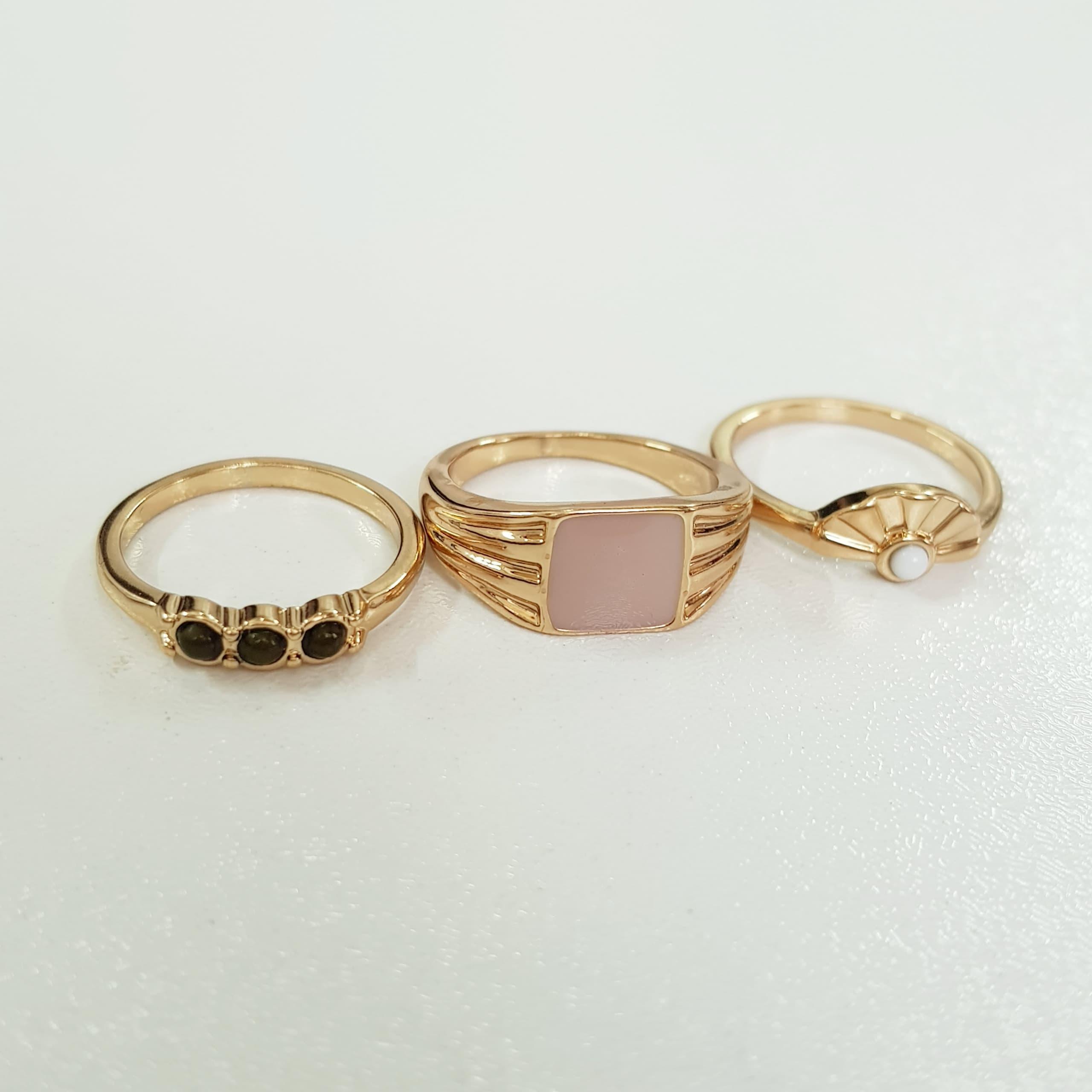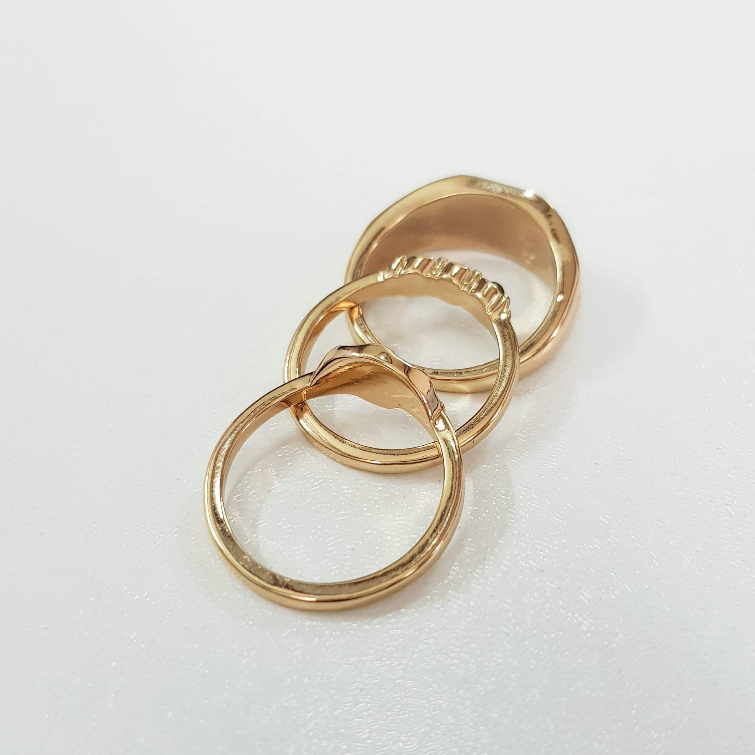 پک سه عددی حلقه و انگشتر طلایی ، کار فوق العاده زیبا و حرفه ای از سری لیمیتد ادیشن اکسسوری ، سایز ۷-۸ رنگ ثابت و ضد حساسیت برند Accessories تحت لیسانس آلمان