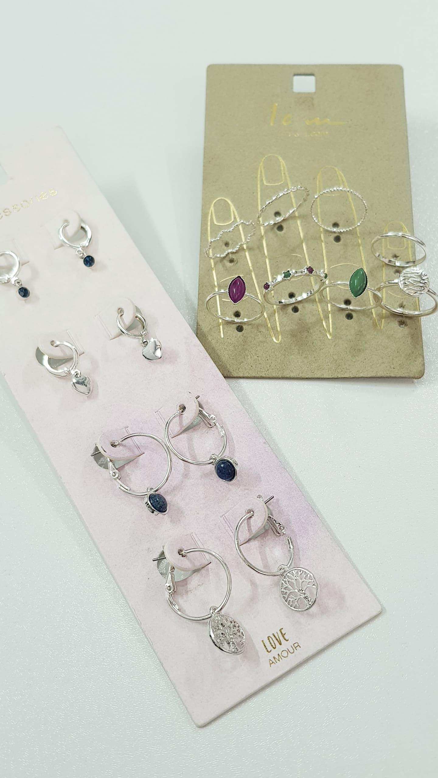 پک اقتصادی هشت عددی انگشتر و پک ۴ جفتی گوشواره آویز دار ، کار فوق‌العاده زیبا و ظریف ، سایز انگشتر ۹ - ۸  ضد حساسیت  برند Accessories و iam تحت لیسانس آلمان