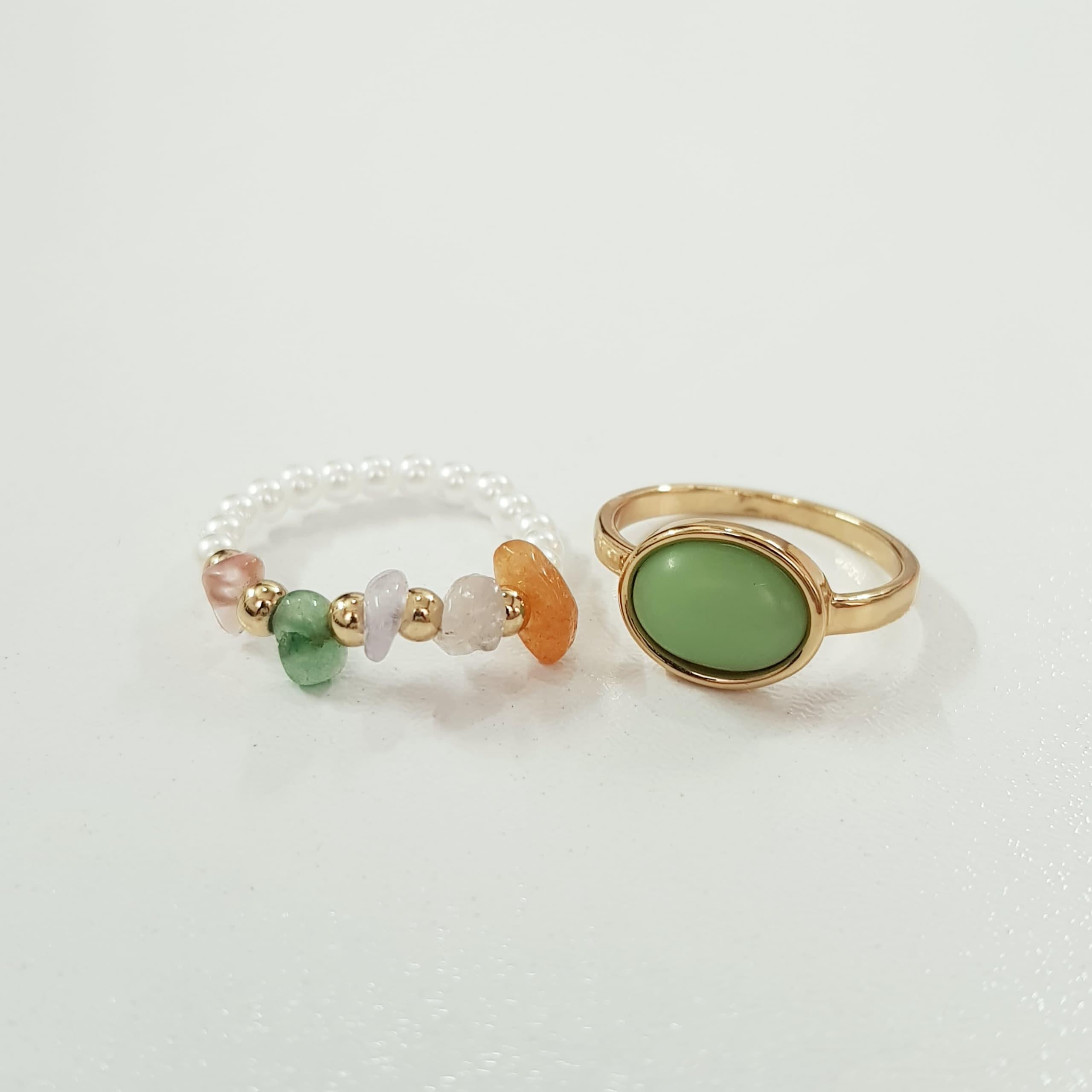 پک انگشتر کار شده با سنگ های طبیعی و مروارید ، کار فوق‌العاده زیبا و دارای خواص درمانی ، مناسب سایز ۷-۸ ضد حساسیت