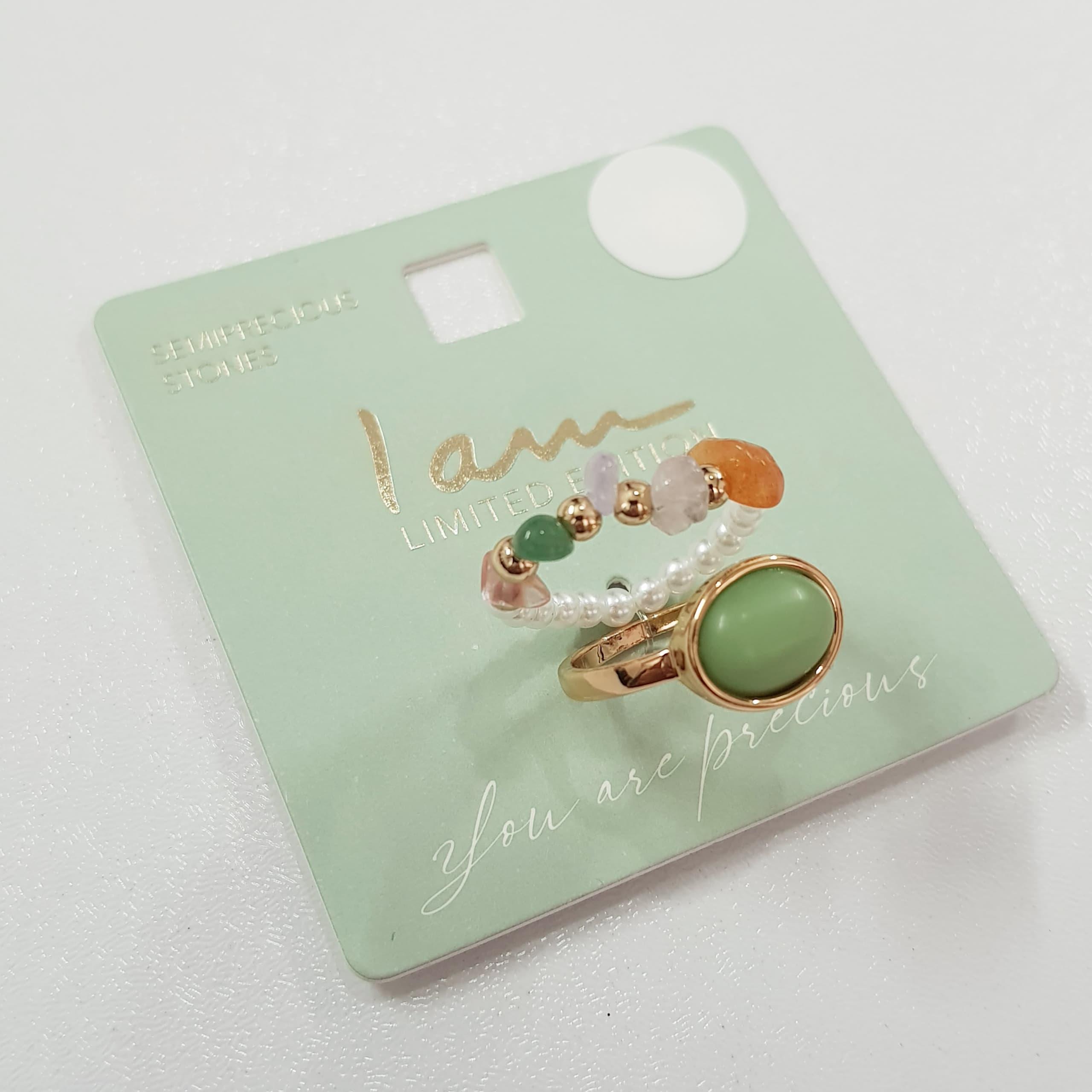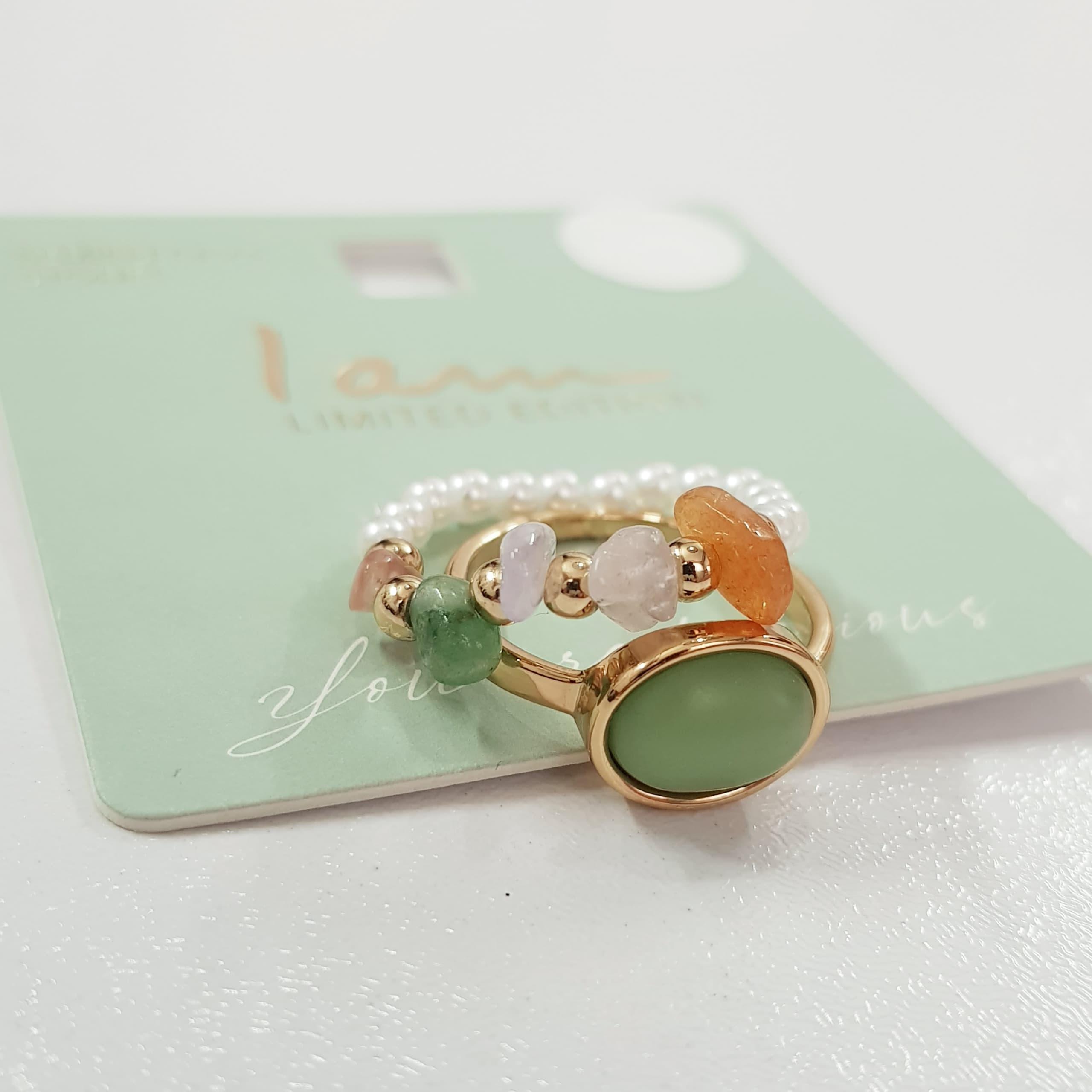 پک انگشتر کار شده با سنگ های طبیعی و مروارید سایز ۷-۸ برند iam کد ۰۶۰۹۶