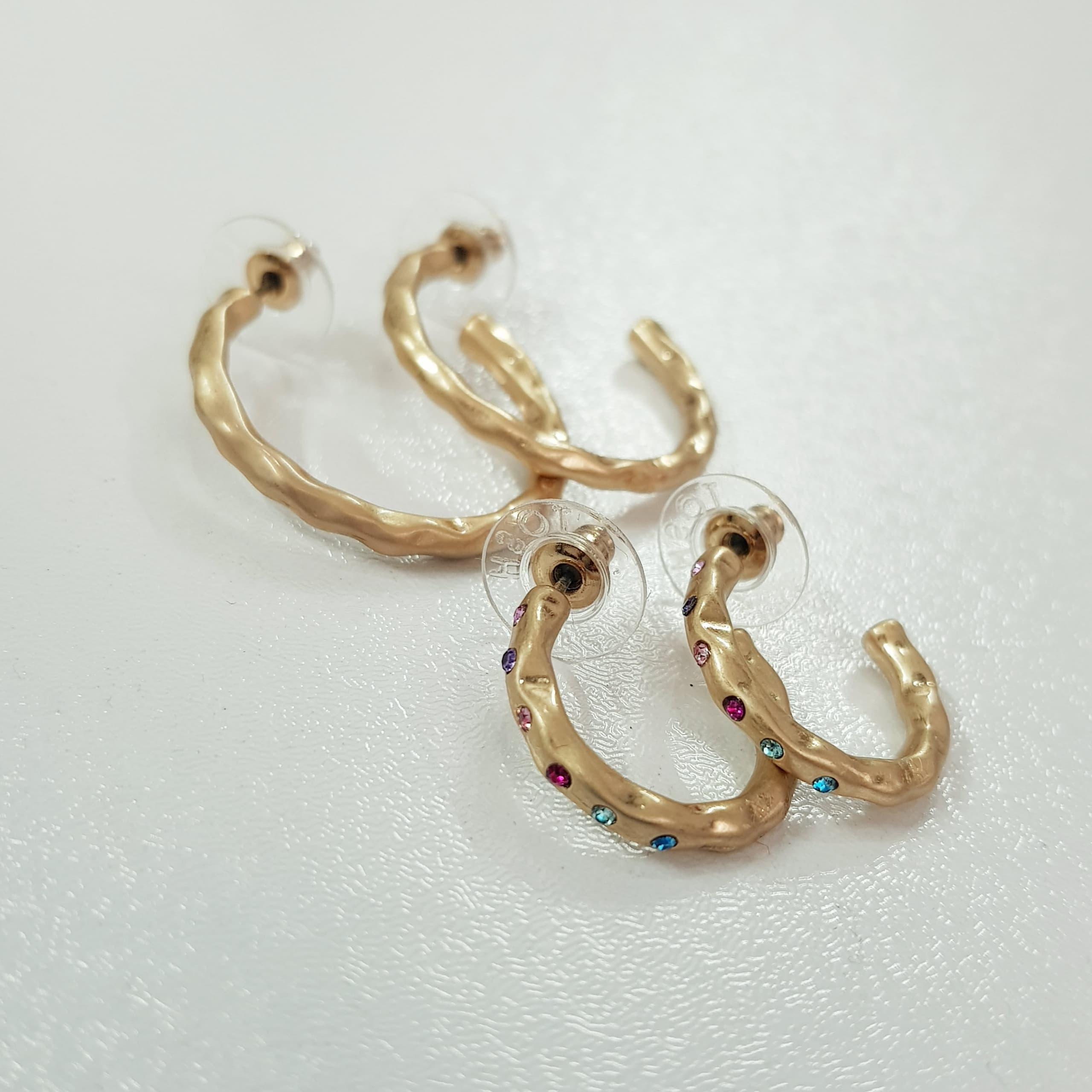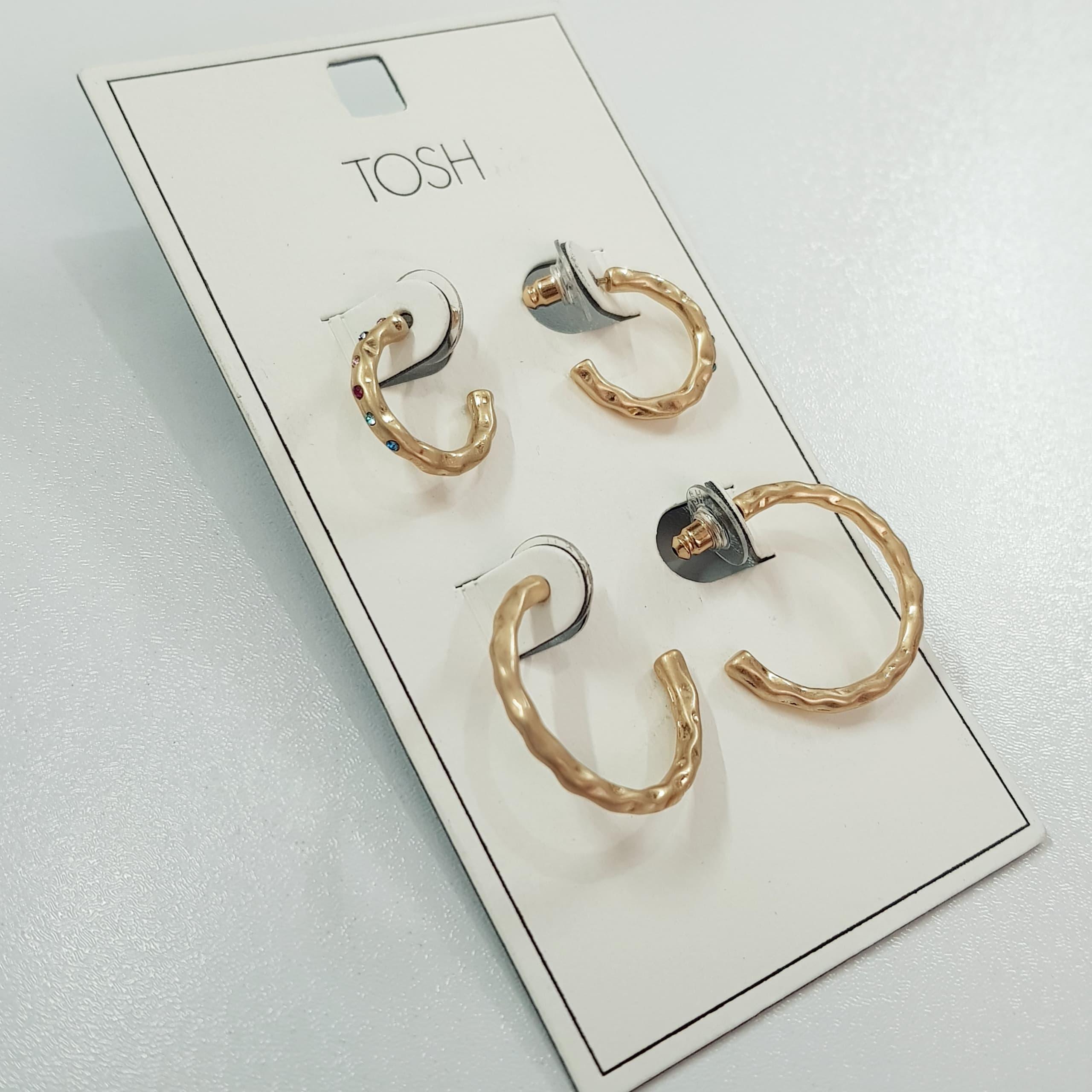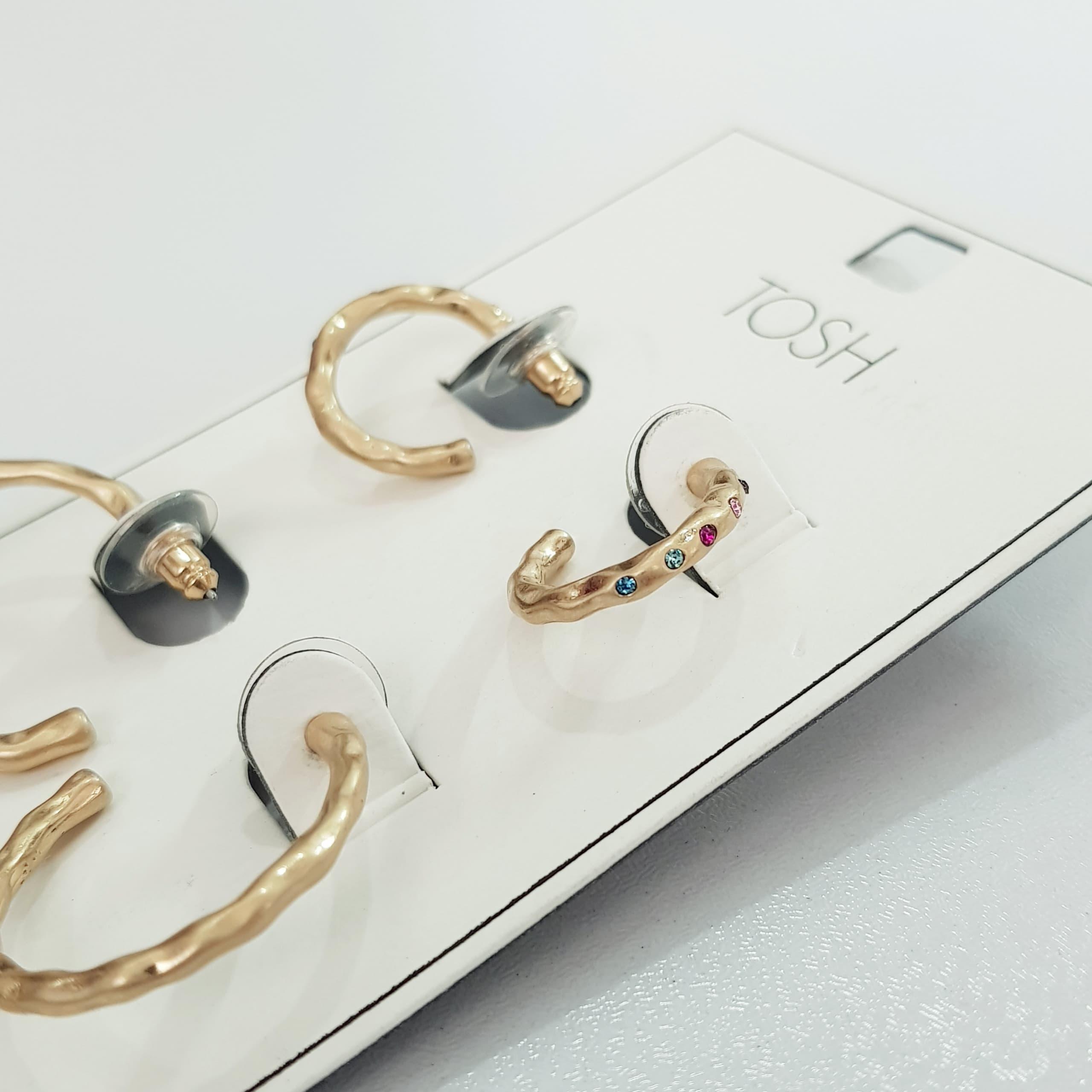 پک دو جفتی گوشواره حلقه طلایی کار شده با نگین های مولتی کالر ، کار بسیار زیبا و با کیفیت ضد حساسیت برند TOSH تحت لیسانس آلمانپ