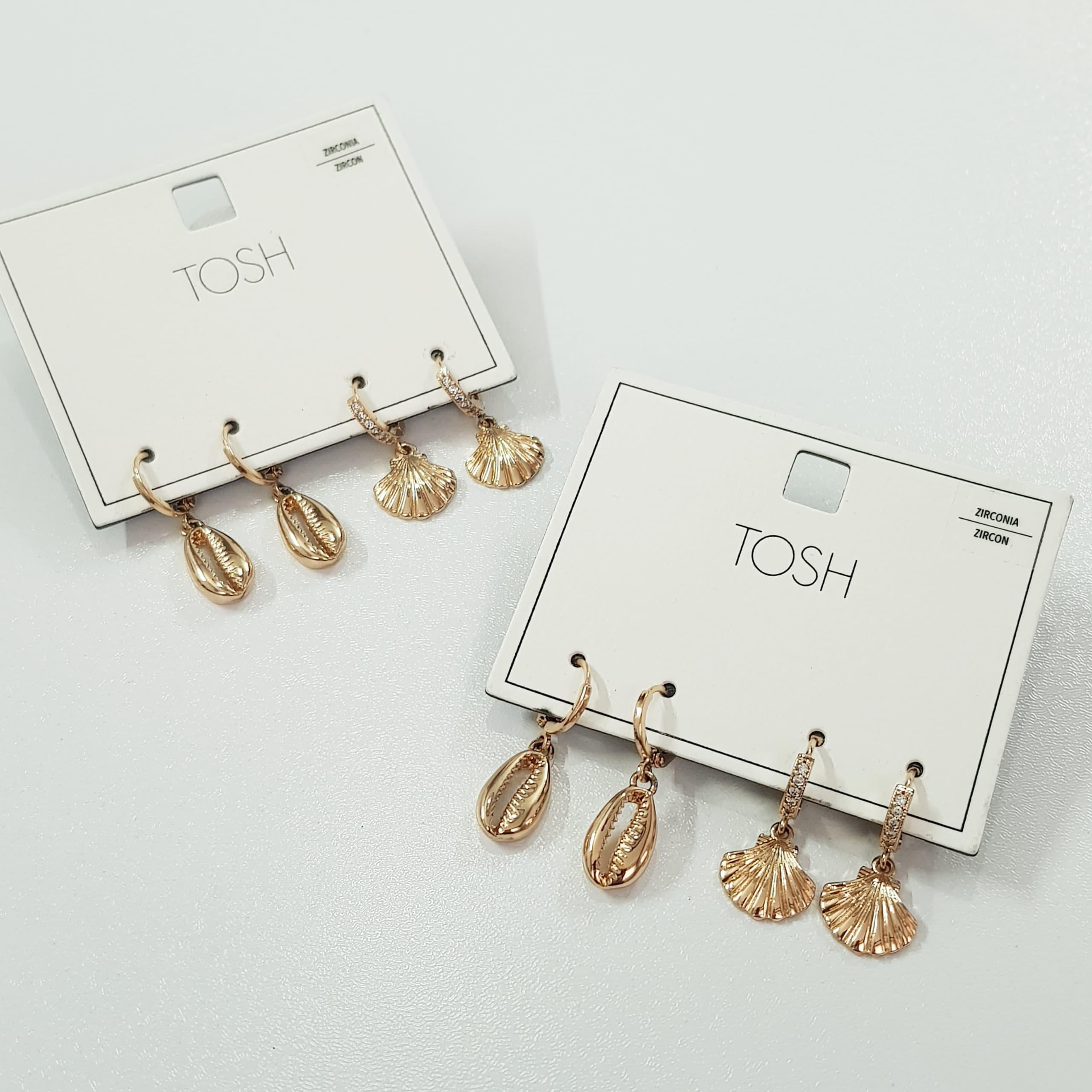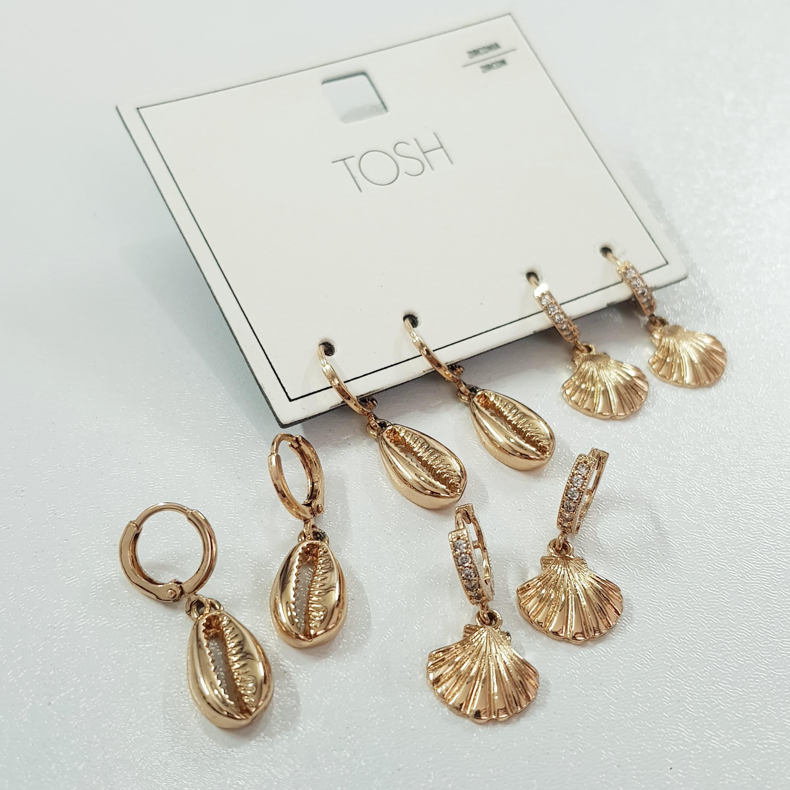 پک دو جفتی گوشواره طلایی قفلی آویز دار برند TOSH کد ۰۶۰۹۵