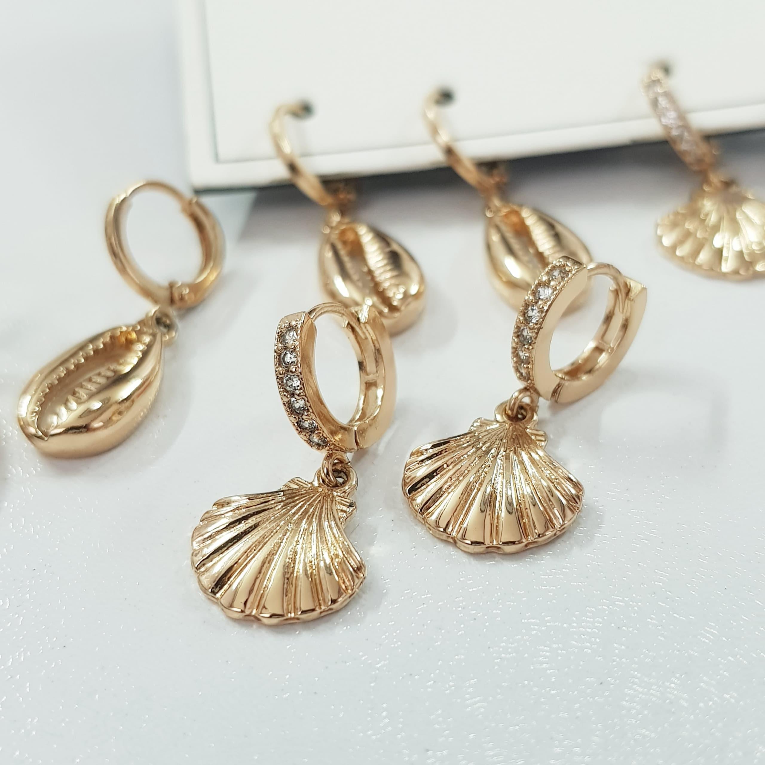 پک دو جفتی گوشواره طلایی قفلی آویز دار ، کار شده با سنگ زیرکنیا ، کار فوق‌العاده حرفه ای و زیبا ، از برند آلمانی TOSH ضد حساسیت برند TOSH آلمان