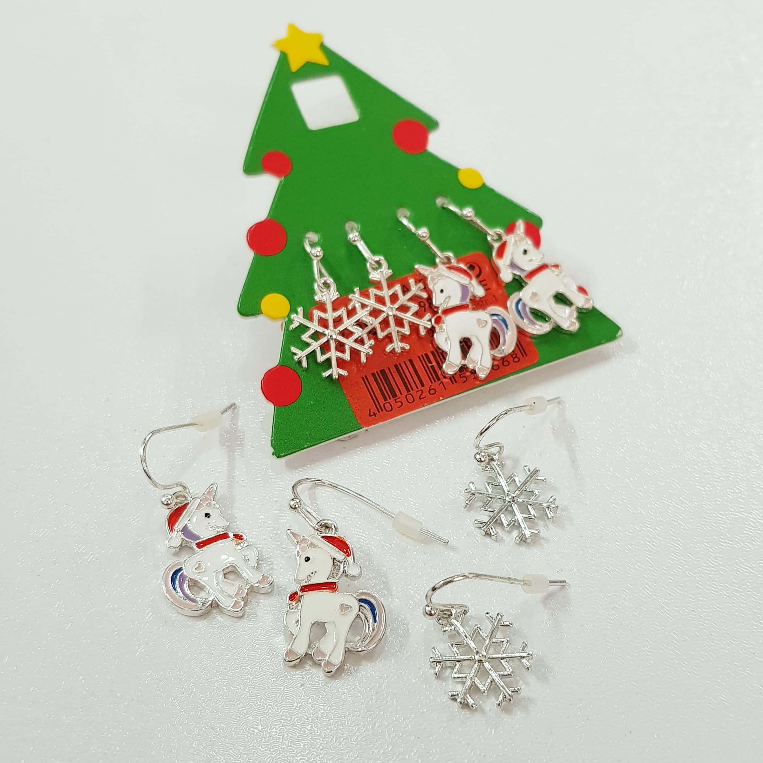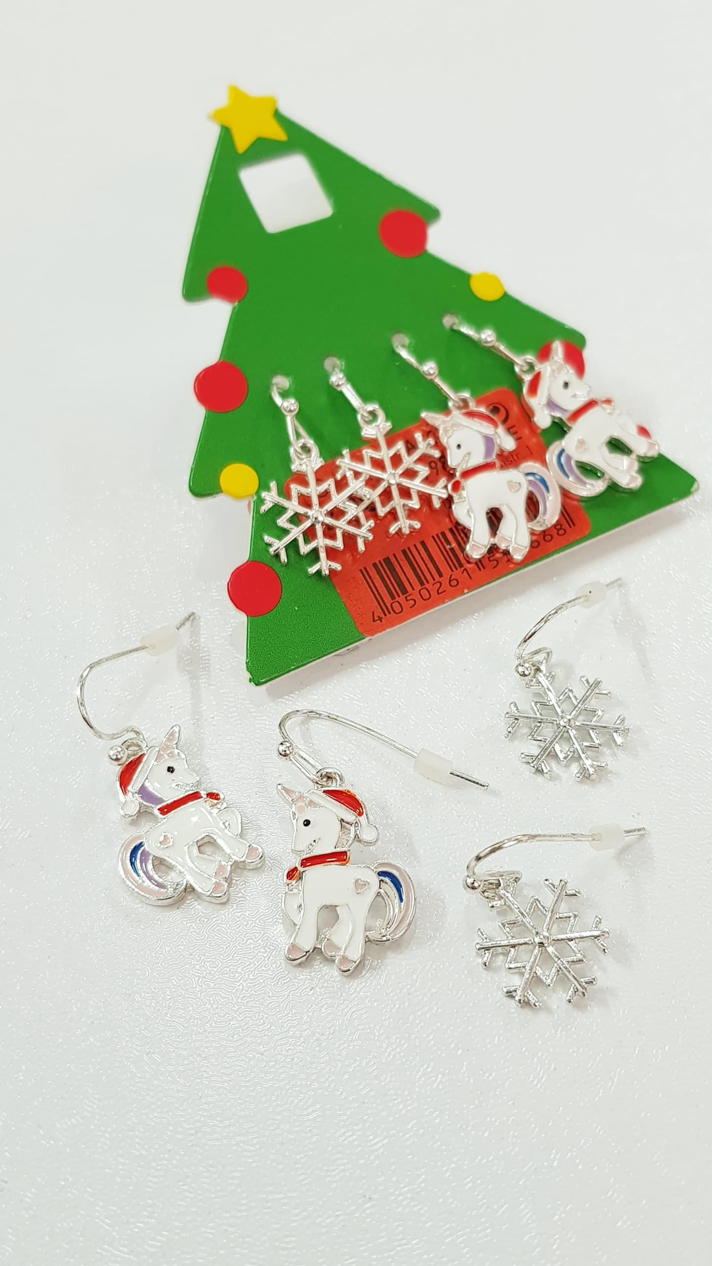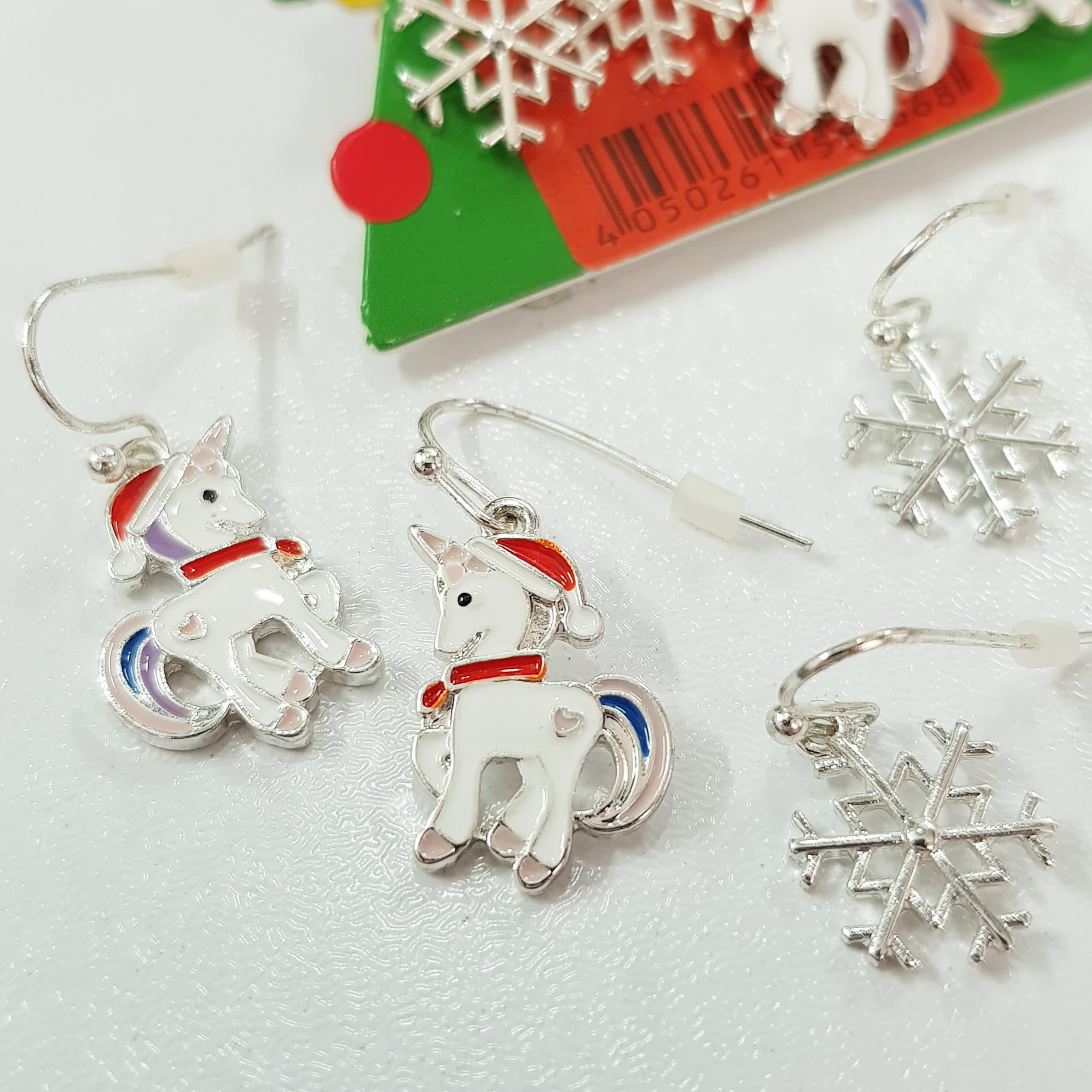 پک دو جفتی گوشواره عصایی کریسمسی آویز تکشاخ و دونه برف ، کار فوق العاده زیبا و فانتزی ضد حساسیت برند ACC تحت لیسانس آلمان