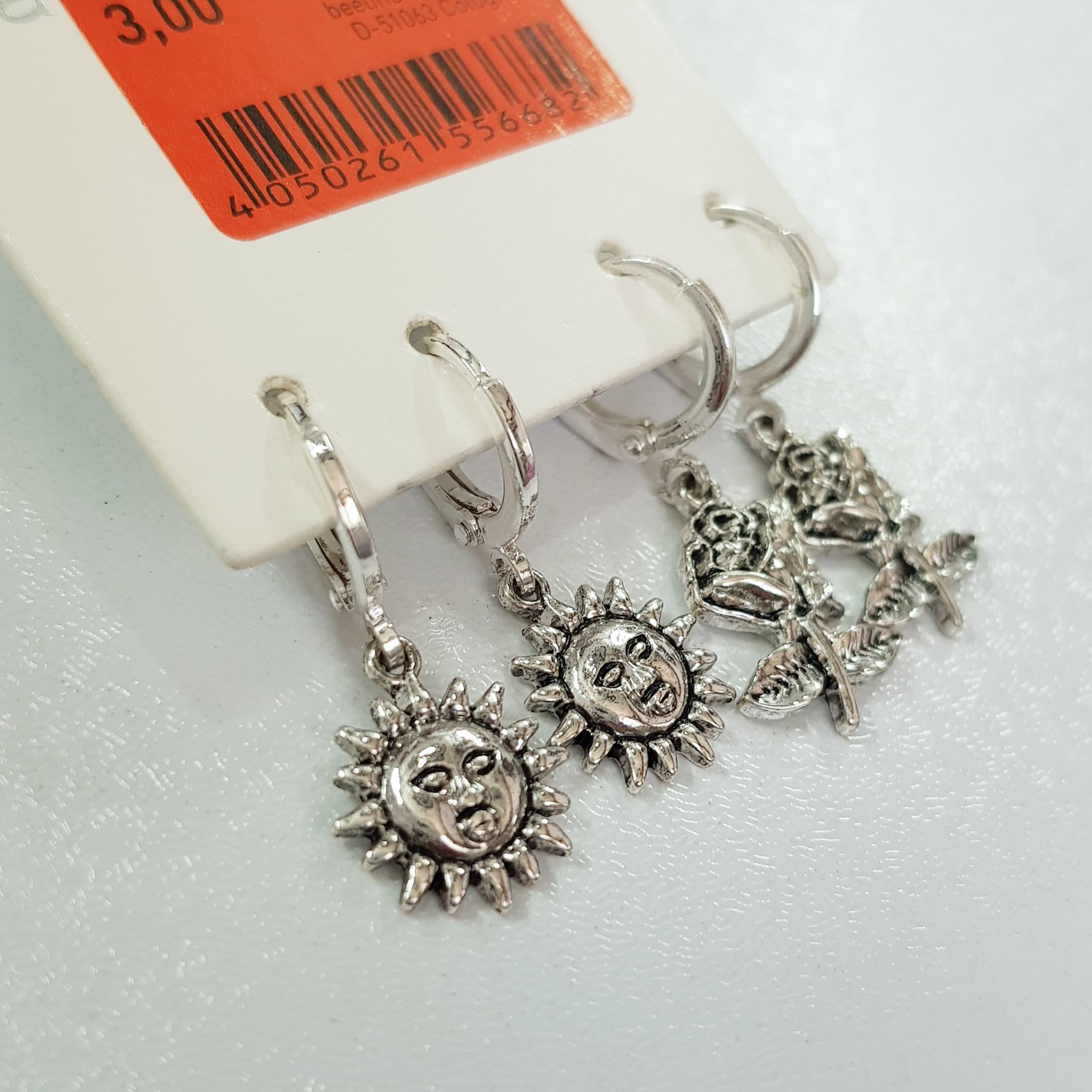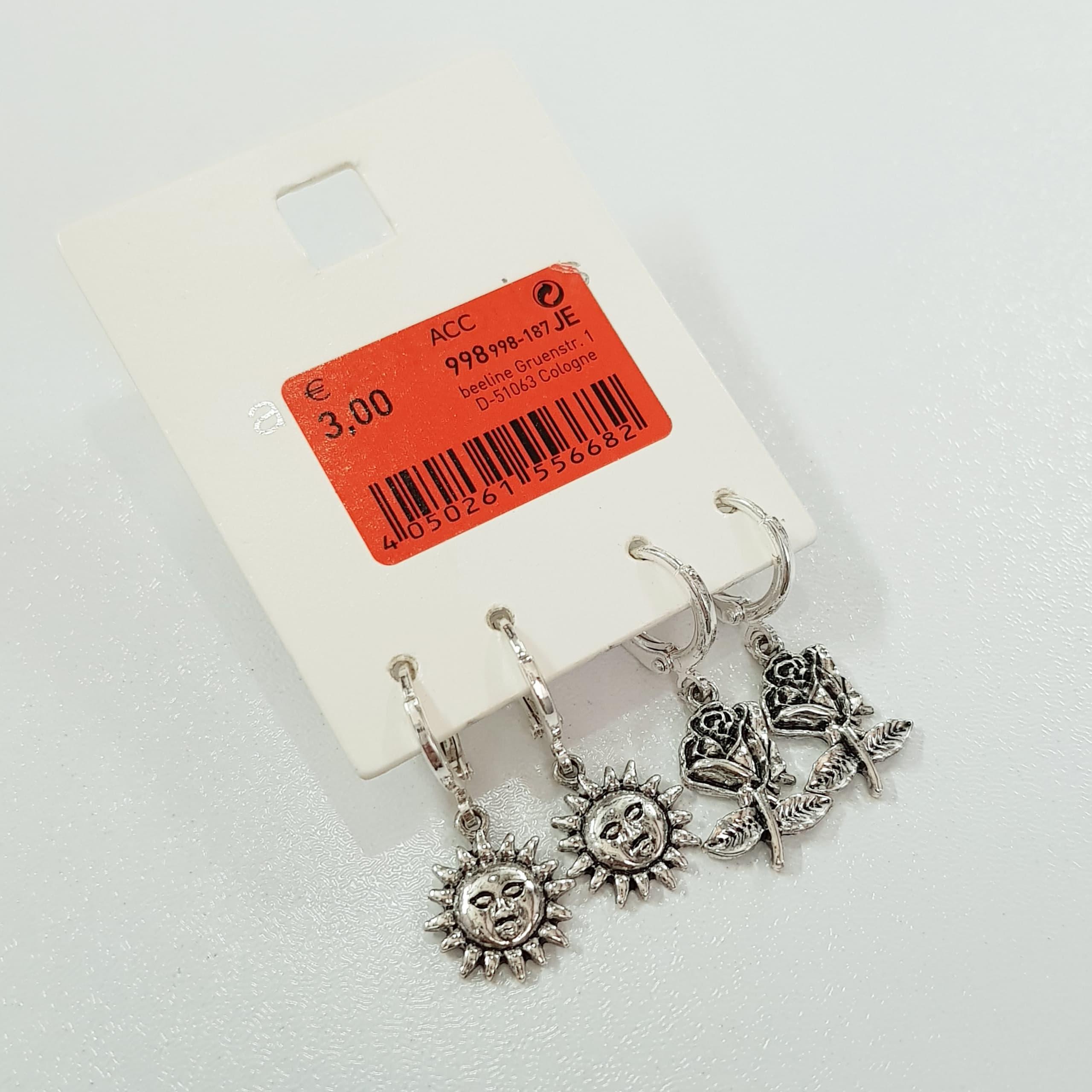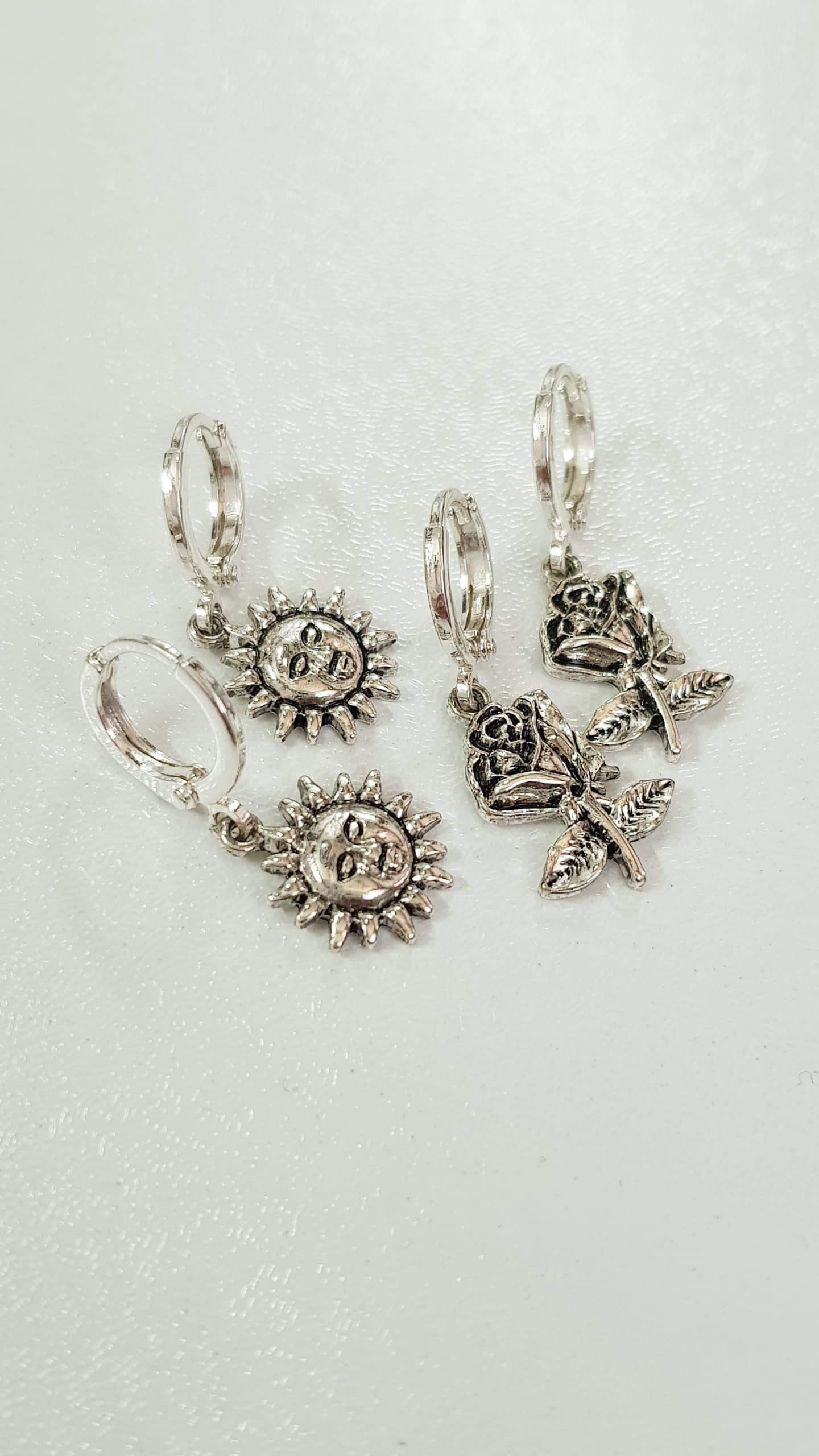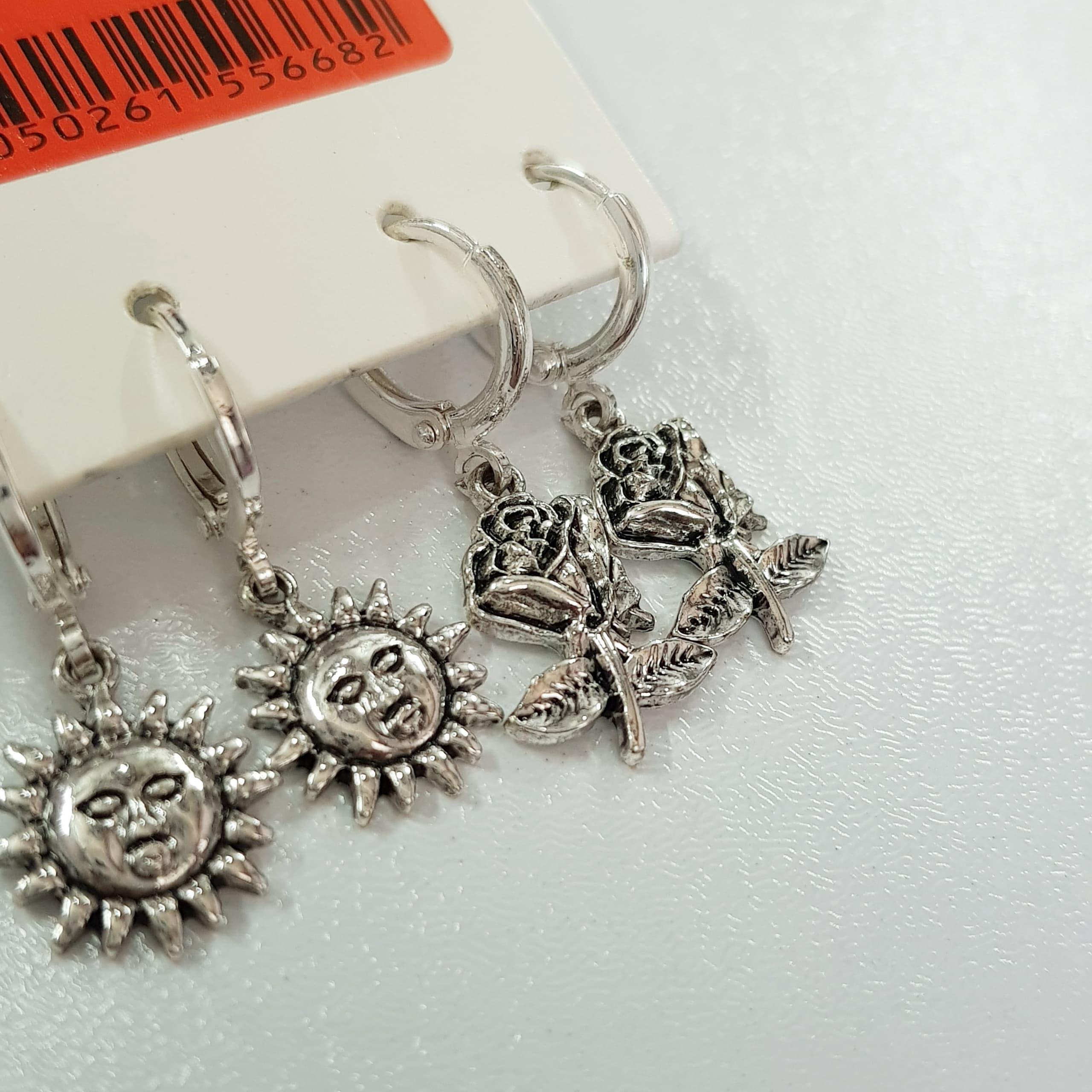 پک دو جفتی گوشواره قفلی نقره ای سیاه قلم آویز گل رز و خورشید ضد حساسیت برند Accessories تحت لیسانس آلمان