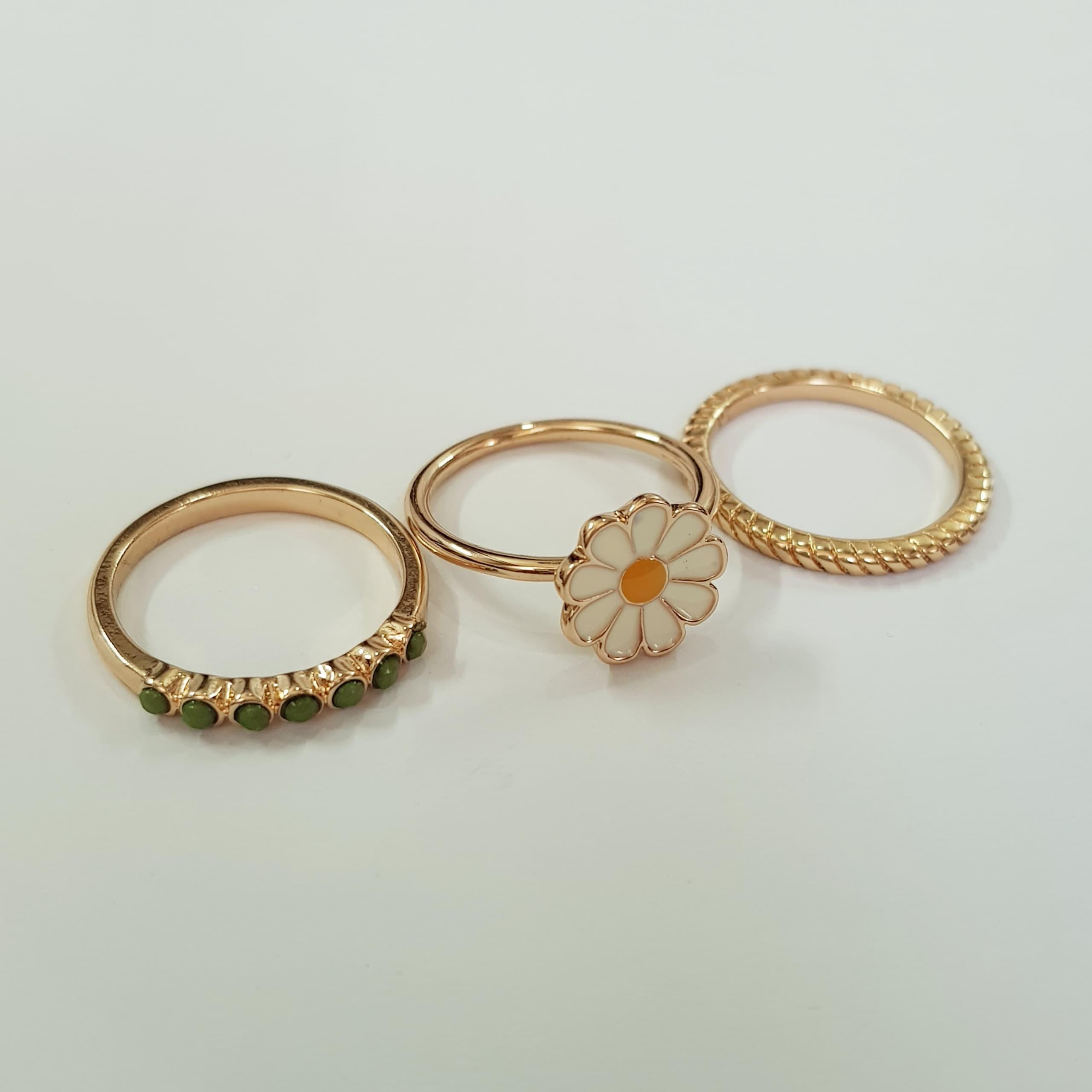 پک سه تایی انگشتر بابونه و حلقه طلایی نگین دار ، کار فوقالعاده زیبا و ظریف ، مناسب سایز ۸ و ۹ ضد حساسیت برند Six تحت لیسانس آلمان