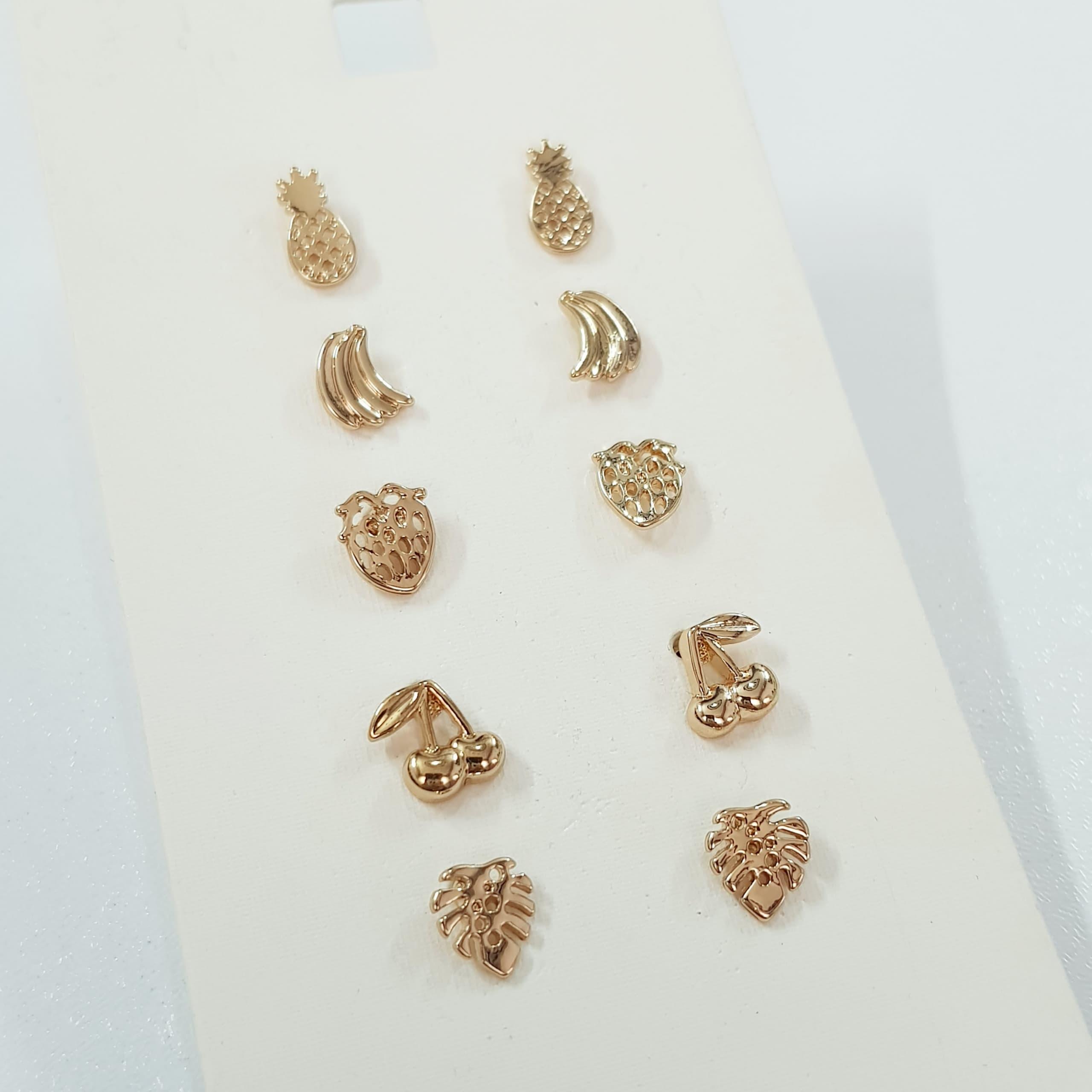 پک اقتصادی پنج جفتی گوشواره گلگوش طرح میوه های استوایی ، کیفیت عالی ، بسیار زیبا و ظریف ضد حساسیت برند iam تحت لیسانس آلمان