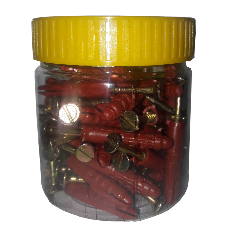 سایر توضیحات | پک شامل: 1 عدد جار (قوطی پلاستیکی) 40 عدد رولپلاک 5 سانت 40 عدد پیچ چوب 2x10 |