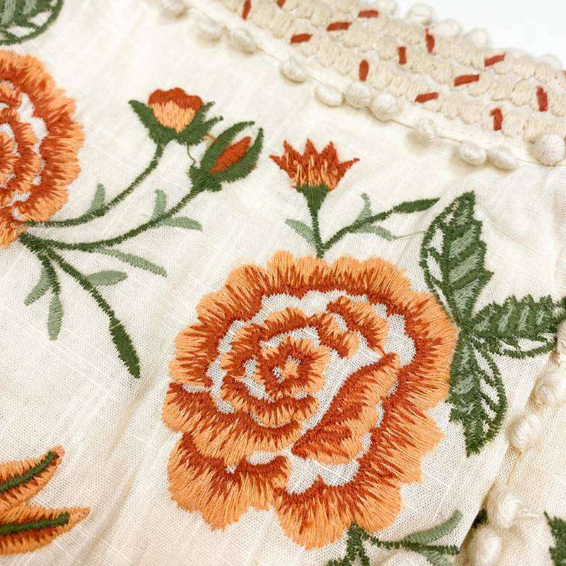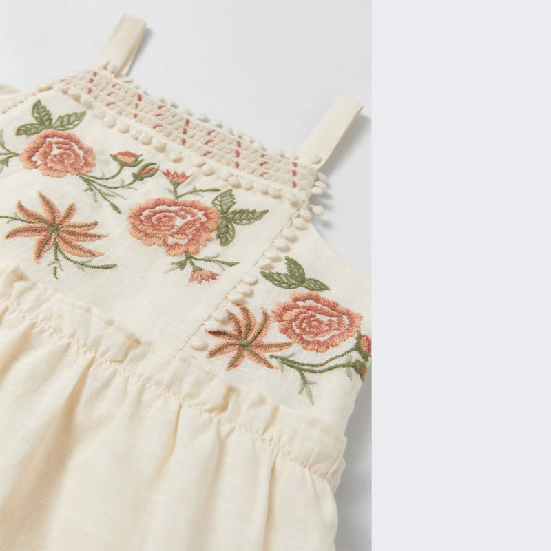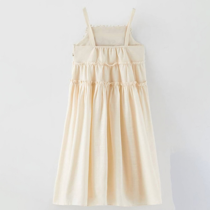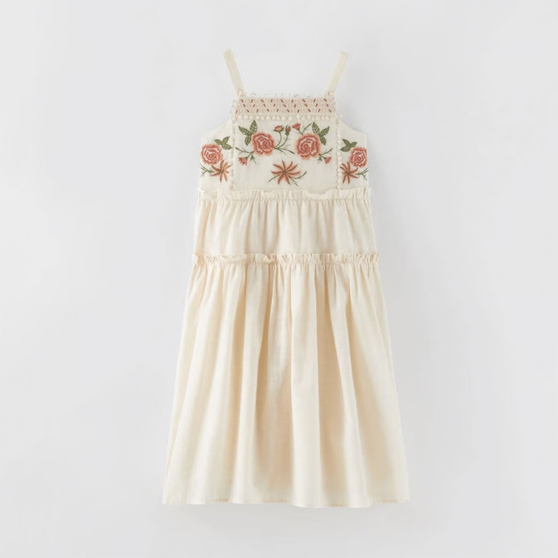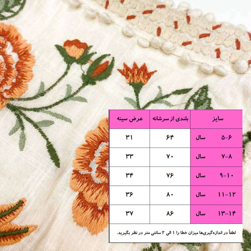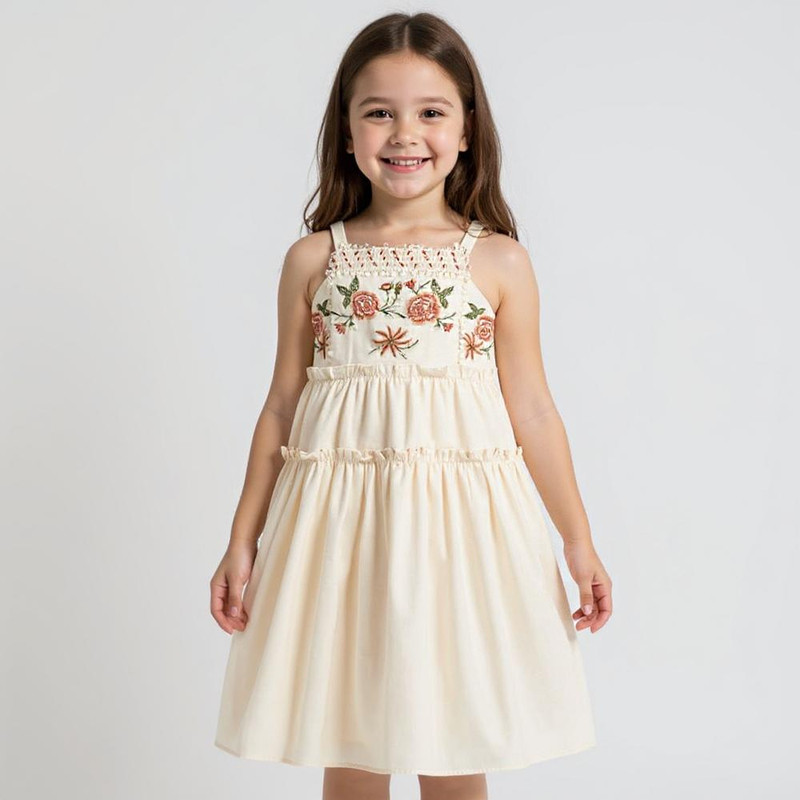 پیراهن بدون آستین یقه خشتی دخترانه مدل گلدوزی کد pk-zr رنگ کرم