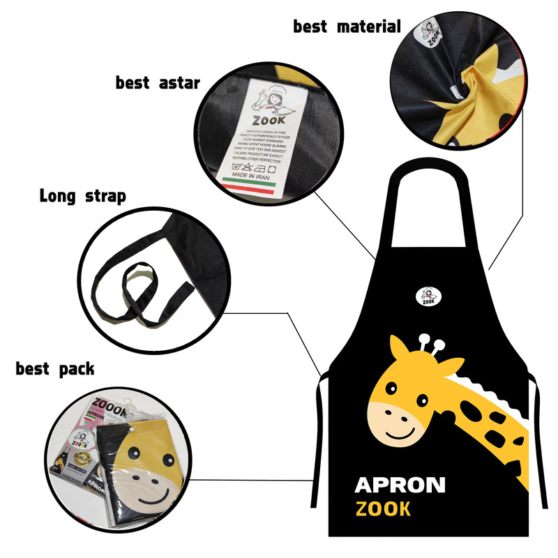 با استفاده از پیشبند بهترین حس را خواهید داشت چون لذت آشپزی و کار در منزل را به شما هدیه میدهد . وقتی این پیشبند را در خانه و آشپزخانه به گردن می اویزید هم بسیار شیک و جذاب خواهید بود و هم الگوی خوبی برای همسر و فرزندانتون.اکثر پیشبندهای موجود در بازار یا آبگیر نیستند و موقع شستن ظرف آب روی پاها میریزد و زمین را خیس میکند و یا اگر آب را جذب میکند از آستر خوبی استفاده نشده و باعث خیس شدن لباسها میشود و دیگر اینکه از بندهایی برای پشت گردن استفاده شده که باعث اذیت شدن گردن میشود و شما احساس بدی خواهید داشت و گاها این نوع پیشبندها بسیار سنگین هستند و در استفاده دراز مدت خیلی خسته کننده اند. اما برند ZOOOK با تولید پیشبندهایی با چاپ های چشم نواز و استفاده از جنس مخمل بسیار سبک که کاملا آبگیر بوده و پشت آن از نوعی آستر ضد آب استفاده شده که باعث میشود با خیس شدن لباس هایتان در هنگام استفاده خداحافظی کنید و حس خوبی را تجربه کنید . اگر بدنبال یک پیشبند شیک .متفاوت . سبک. راحت با رنگ ثابت و کاملا قابل شستشو هستید حتما از محصولات ZOOOK استفاده کنید و شیک بودن حتی در آشپزخانه را به خودتون هدیه بدهید .