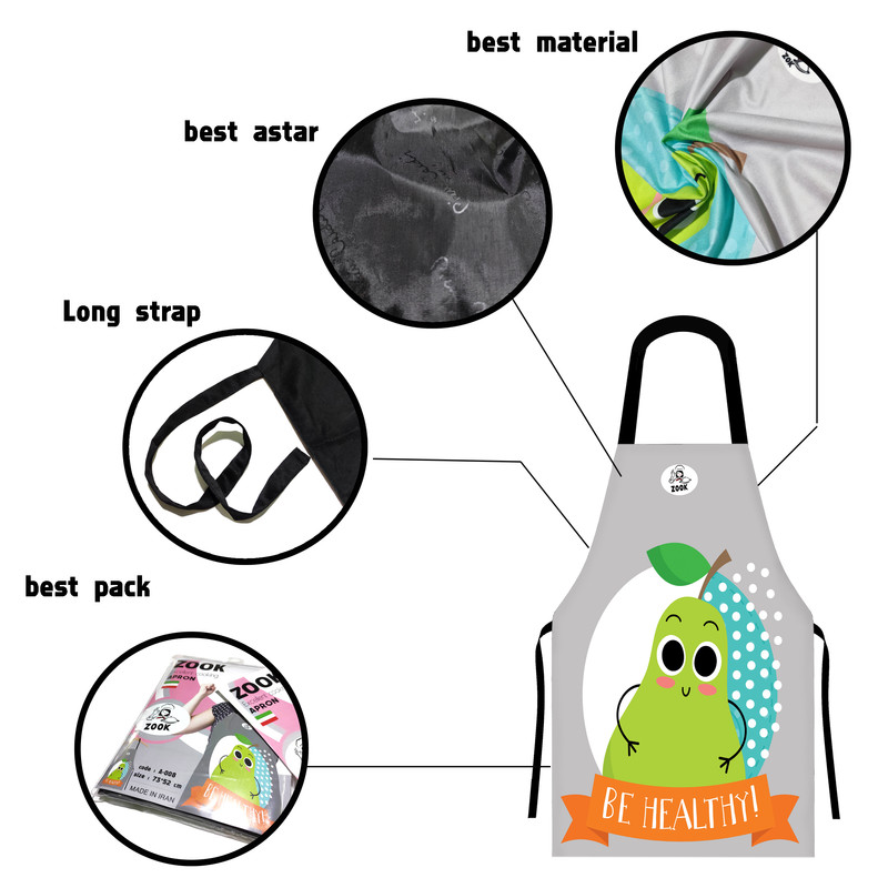 با استفاده از پیشبند بهترین حس را خواهید داشت چون لذت آشپزی و کار در منزل را به شما هدیه میدهد . وقتی این پیشبند را در خانه و آشپزخانه به گردن می اویزید هم بسیار شیک و جذاب خواهید بود و هم الگوی خوبی برای همسر و فرزندانتون.اکثر پیشبندهای موجود در بازار یا آبگیر نیستند و موقع شستن ظرف آب روی پاها میریزد و زمین را خیس میکند و یا اگر آب را جذب میکند از آستر خوبی استفاده نشده و باعث خیس شدن لباسها میشود و دیگر اینکه از بندهایی برای پشت گردن استفاده شده که باعث اذیت شدن گردن میشود و شما احساس بدی خواهید داشت و گاها این نوع پیشبندها بسیار سنگین هستند و در استفاده دراز مدت خیلی خسته کننده اند. اما برند ZOOK با تولید پیشبندهایی با چاپ های چشم نواز و استفاده از جنس مخمل بسیار سبک که کاملا آبگیر بوده و پشت آن از نوعی آستر ضد آب استفاده شده که باعث میشود با خیس شدن لباس هایتان در هنگام استفاده خداحافظی کنید و حس خوبی را تجربه کنید . اگر بدنبال یک پیشبند شیک .متفاوت . سبک. راحت با رنگ ثابت و کاملا قابل شستشو هستید حتما از محصولات ZOOK استفاده کنید و شیک بودن حتی در آشپزخانه را به خودتون هدیه بدهید .