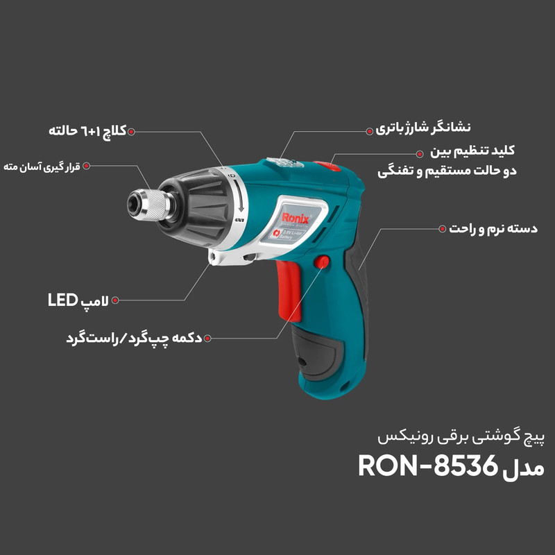 سایر توضیحات | - دارای موتوری با عملکرد بالا که امکان باز و بسته کردن پیچ های مختلف با گشتاورهای مختلف را فراهم می کند - دارای بدنه ای سبک و کوچک با طراحی ارگونومیک، برای استفاده آسان و حداکثر کارایی ممکن - دارای سرعتی بالغ بر 200 دور در دقیقه و گشتاور 3 نیوتن متری - مجهز به باتری سامسونگ 3.6 ولت با ظرفیت 1.5 آمپرساعت، با طول عمر بالا و قابلیت شارژ سریع - مجهز به ابزارگیری پیشرفته با ظرفیت 6.25 میلی متر با عملکرد عالی - مجهز به کلاچ 1+6 حالته که دقت بالای روند کار پیچ کاری را به همراه داشته و از ورود آسیب به سطح کار جلوگیری می کند - مجهز به سیستم تعویض سریع در ابزارگیر جهت تعویض سریع و آسان سری های مختلف - مجهز به یک چراغ LED جهت کار در محیط های کم نور و تاریک - مجهز به چراغ نشانگر میزان شارژ باتری - مجهز به سیستم شارژ سریع - در بسته بندی این محصول مجموعه ای از 117 قطعه سری پیچ گوشتی و بکس ساخته شده از مواد CR-V و یک فست شارژر عرضه می شود - دارای قابلیت کارکرد در دو حالت مستقیم و تفنگی با استفاده از ویژگی تاشو بودن دستگاه |