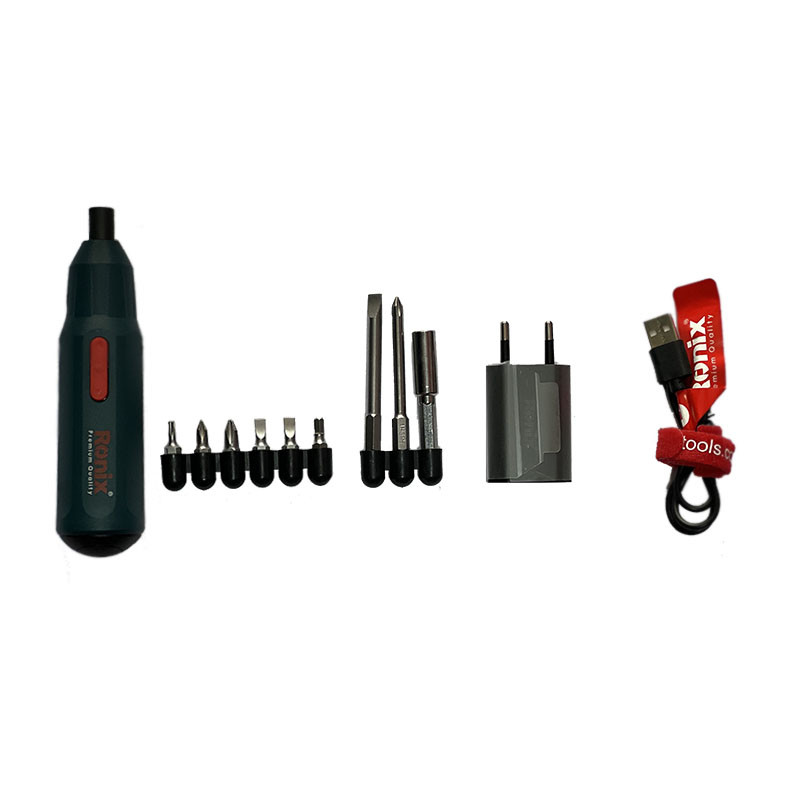 پیچگوشتی شارژی رونیکس مدل 8590 یک پیچگوشتی شارژی با طراحی ارگونامیک و جمع جور برای باز و بساه کردن انواع پیچ ها می باشد . این پیچگوشتی با ظرفیت باتری 3/6 ولت 850 میلی آمپر ساعت عملکرد فوق العاده ایی در نگه داری از شارژ دارد . سرعت این پیچگوشتی 220 دور در دقیقه و حداکثر گشتاور 1 نیوتن بر متر است .اندازه ابزار گیر این پیگوشتی 1/4 اینچ است . این پیگوشتی دارای سری آهنربایی بسیار قوی می باشد . به همراه این پیچگوشتی 9 عدد سری کاربردی و شارژر و سیم شارژ ارائه می شود .