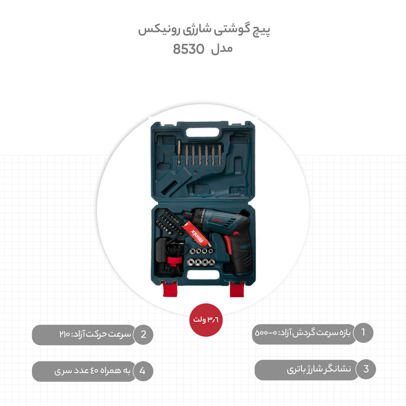 ویژگیهای پیچ گوشتی برقی و شارژی | نشانگر شارژ باتری |