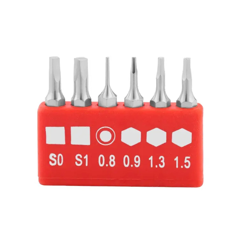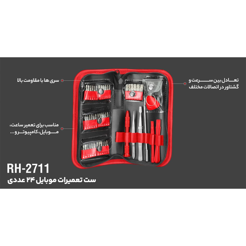 مجموعه پیچ گوشتی، سری پیچ گوشتی، سری بکس و لوازم تعمیرات رونیکس یک مجموعه کامل برای تعمیرات و مونتاژ انواع دستگاه های الکترونیکی و تعمیرات تلفن همراه، دوربین عکاسی، ساعت، عینک و تمام دستگاه های ظریف و کوچک است. این ست تعمیرات موبایل رونیکس دارای یک دسته پیچ گوشتی 8 سانتی متری کاملا آلومینیومی با بیت گیر آهنربایی است که سری های پیچ گوشتی فلزی از جنس فولاد SNCM 8660 به خوبی در درون آن قرار می گیرند و به کار می پردازند.برای راحتی کار و دسترسی به قطعات بد دسترس و داخل در عمق دستگاه ها، این مجموعه به یک دسته اضافه شونده بلند 11.5 میلی متری مجهز شده است.سری های پیچ گوشتی 28 میلی متری این مجموعه شامل چهار عدد سری پیچ گوشتی چهار سو شامل سه سری پیچ گوشتی ساعتی به سایزهای PH000, PH00, PH0 و یک سری پیچ گوشتی چهارسو PH1، پنج عدد سری پیچ گوشتی دوسو به سایزهای 1.0، 1.5، 2، 2.5 و 3، سه عدد سری پیچ گوشتی ستاره ای در سایزهای T3, T4 , T5، شش عدد سری پیچ گوشتی ستاره ای سوراخ دار به سایزهای T6, T7, T8, T9, T10 , T15 ، دو عدد سری پیچ گوشتی چهارگوش یا مربعی به سایزهای S0 و S1 ، هفت عدد سری پیچ گوشتی شش گوش به سایزهای 0.8، 0.9، 1.5، 1.5، 2.0، 2.5 و 3 ، سه عدد سری پیچ گوشتی P به سایزهای P2, P5 , P6، چهار عدد سری پیچ گوشتی مثلثی به سایزهای 1.6، 2، 2.2 و 2.3 و دو عدد سری پیچ گوشتی سه پر به سایزهای 0 و 1 به اضافه‌ی شش عدد سری بکس کوچک به سایزهای 2.5، 3، 3.5، 4، 4.5 و 5 است.برای راحتی کار تعمیرات موبایل و سایر دستگاه ها، در بسته بندی این محصول، دو عدد اهرم پلاستیکی از جنس پلاستیک ABS، دو عدد موچین فلزی، یک پد مثلثی ABS و یک قطعه چسبنده به سطح از جنس PVC قرار داده شده است.نکته خوب درباره این ست، داشتن یک کیف برزنتی زیپ دار مرغوب است که قطعات را به خوبی در درون خود نگاه می دارد. تمام این ست پیچ گوشتی تعمیرات موبایل رونیکس هم در یک جعبه مقوایی قرار گرفته که با وزن کلی 340 گرم و ابعاد بسته بندی 20.5×11×4 سانتی متر توسط شرکت رونیکس در کشور چین ساخته شده است.