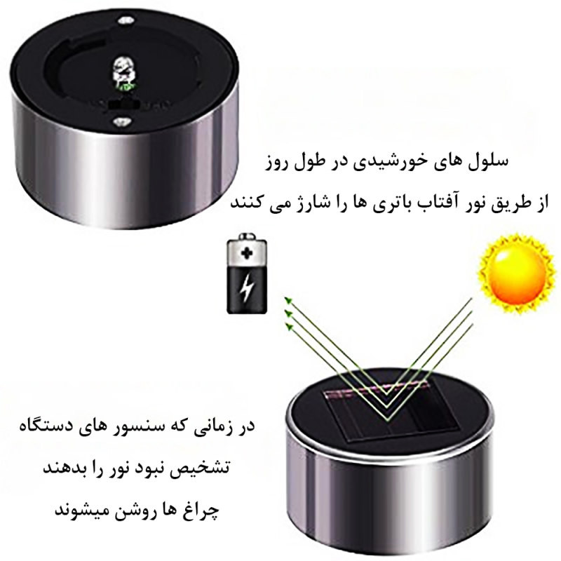 چراغ سولار باغی LED مهتابی و آفتابی مدل کلاسیک، ضد آب در برابر باران است که در طول روز باتری داخلی چراغ باغی از طریق صفحه خورشیدی و انرژی خورشید شارژ شده و به هنگام تاریکی و شب به صورت خودکار روشن می شود. لطفا توجه نمایید نور این محصول تزئینی است.ارتفاع چراغ: 36 سانتی مترمیباشد.
