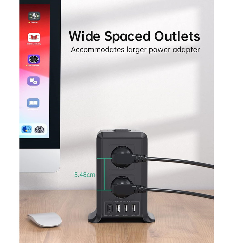 توضیحات پریز8 عدد پریز مقاوم در برابر حرارت ۱۳۸۲ درجه فارنهایت جنس پوسته پلی کربنات با کیفیت بالا: مقاومت در برابر شعله، عایق بودن و مقاومت در برابر سوراخ شدن بالاتر از حد معمول است. در صورت اضافه بار جریان، می‌تواند محافظت عالی برای دستگاه‌های الکترونیکی شما نیز فراهم کند. ایمنی کودک: ایمنی این کابل افزایش طول برای محافظت از کودکان نوپا تعبیه شده است، هنگامی که کل بار مدار از 2500 وات فراتر رود، چندراهی برق برجی به طور خودکار منبع تغذیه را برای محافظت از دستگاه‌ها خاموش می‌کند. طول کابل ۵ متر : کابل با طول ۵ متری، مشکل دور بودن میز کار از پریز برق را حل می‌کند. سیم‌های مسی ضخیم‌تر برای رسانایی قوی‌تر، توان خروجی کارآمدتر، گرمای کم و ایمنی بیشتر.